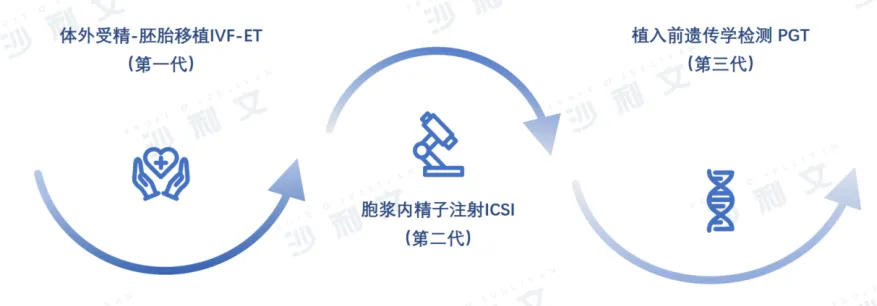 近年来,以体外受精(IVF)为代表的辅助生殖技术持续发展,已形成三代技术体系,包括第一代体外受精-胚胎移植(IVF-ET)、第二代胞浆内精子注射(ICSI)以及第三代植入前遗传学检测(PGT)。
