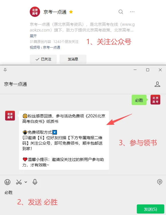获取专属海报,分享给【6个好友】扫码关注京考一点通公众号即可~