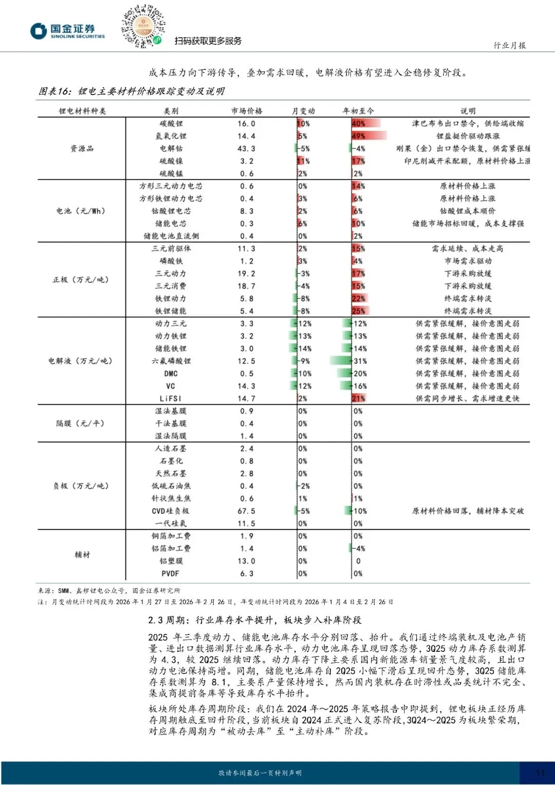 电力设备与新能源行业月报:锂电2月洞察,春季淡季不淡,价格预先回暖-260306-国金证券-18页