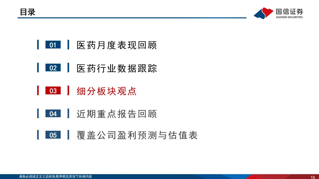 基于行业的短期业绩及长期全球竞争力,我们认为CXO仍是当前医药板块的最强投资主线。从R端来看:国际方面,投融资改善,全球医药研发温和复苏;国内方面,创新药研发欣欣向荣,带动临床前需求回暖、临床批件数目中高速增长。从D和M端来看:小分子领域,中国凭借过硬的化学能力、充足的合规产能、优渥的工程师红利,中长期竞争力稳固;大分子领域,行业中高速发展,中国企业与MNC的合作逐步加深。