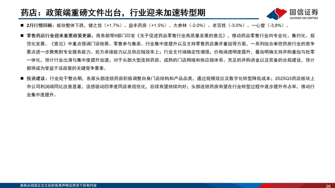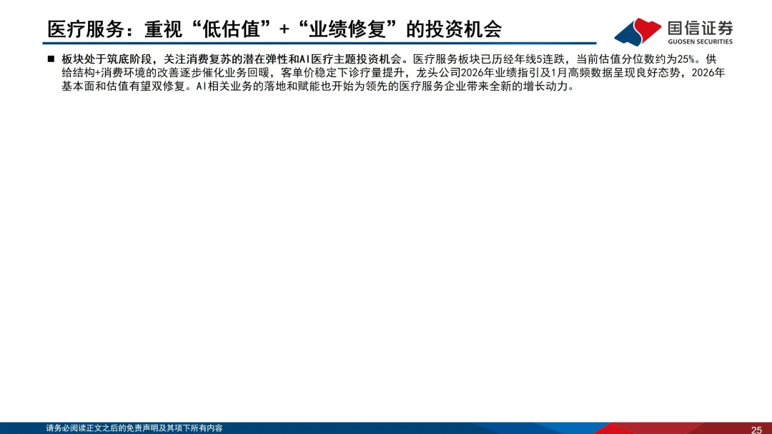 【国信医药|行业月报】关注低估值和业绩修复的服务及消费板块——医药生物行业2026年2月投资策略
