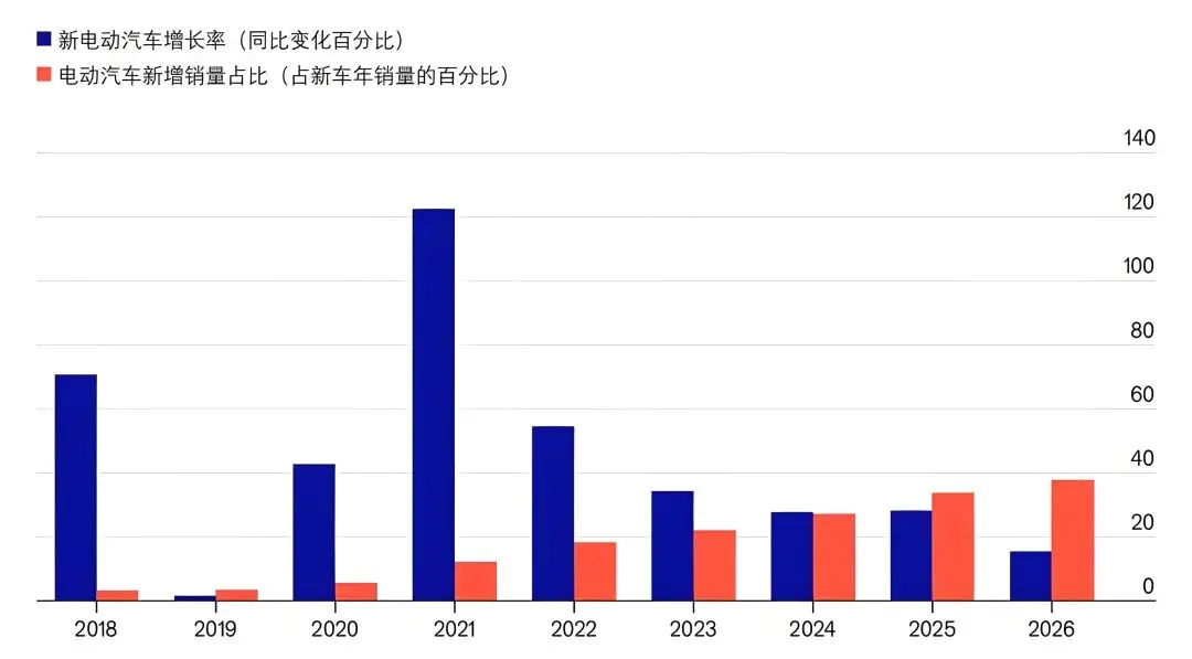 2026年国内新能源渗透率稳定在60%-65%,2027年有望突破70%;全球新能源销量增速维持在10%-15%,中国品牌全球份额突破35%。燃油车每年以5%-8%的速度萎缩,2030年前后基本退出主流市场。