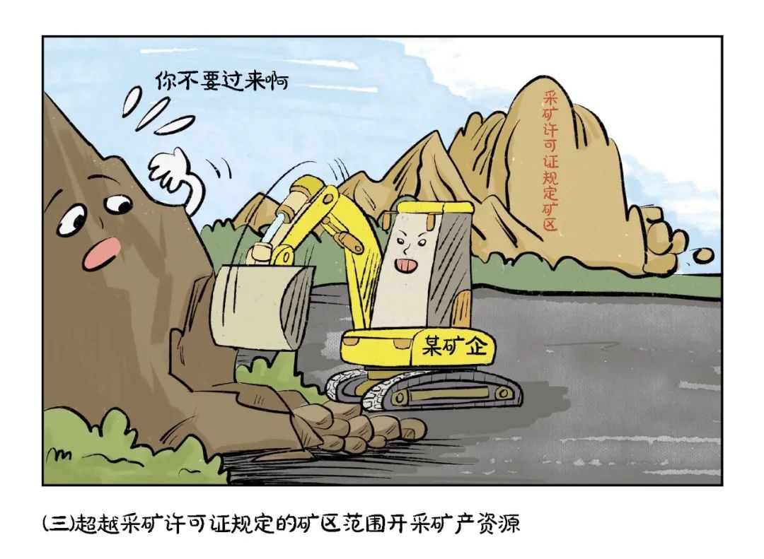 (三)超越采矿许可证规定的矿区范围开采矿产资源的;