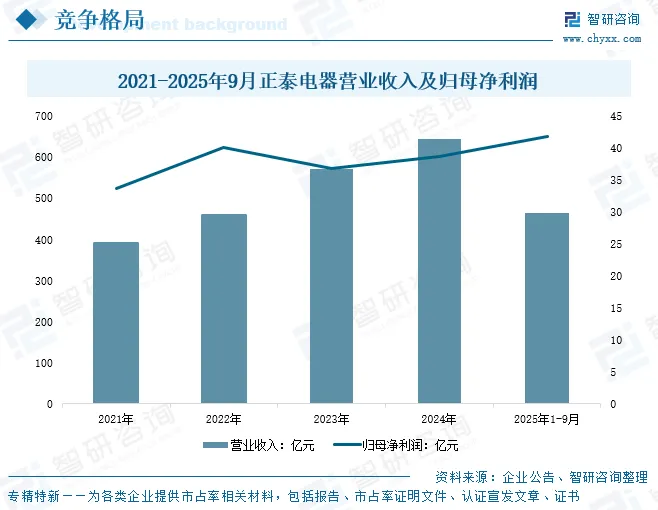 浙江正泰电器股份有限公司主要从事配电电器、终端电器、控制电器、电源电器、电子电器、建筑电器和仪器仪表、自动化控制系统的研发、生产和销售;以及光伏电站开发、建设、运营、运维,EPC工程总包,和BIPV、户用光伏的开发和建设;以及逆变器和储能的研发、生产和销售等业务。作为全球智慧能源解决方案提供商,正泰电器稳压器以高性价比著称。依托全产业链优势,产品从基础款到智能监控款全覆盖,380V工业级型号广泛应用于机床、生产线,稳定性经市场长期验证。2025年1-9月公司实现营业收入463.96亿元,同比下降0.03%;归母净利润41.79亿元,同比上涨19.49%。