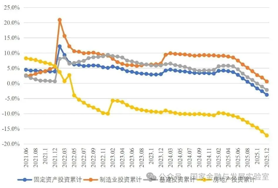 图3 2021年6月至2025年12月固定资产及各主要分项累计投资增长情况