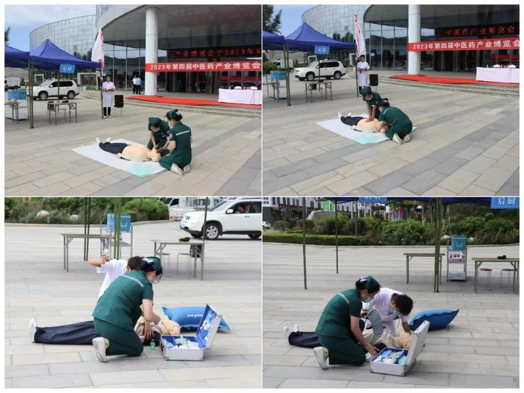 在药博会某个活动现场,因一名工作人员常时暴露于高温环境下,发生中暑倒地,陇西县第一人民医院医护人员立即开展临床救治工作。