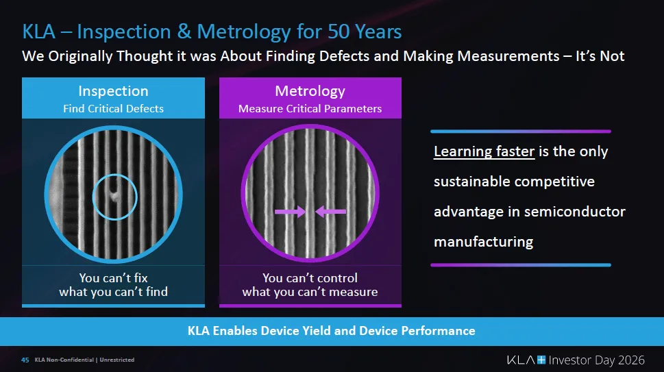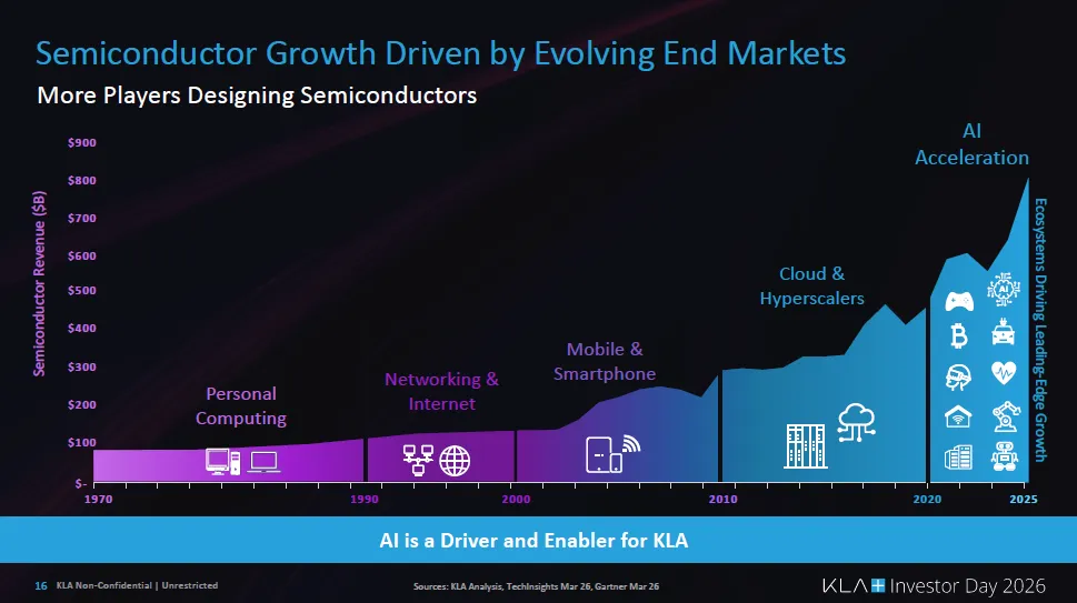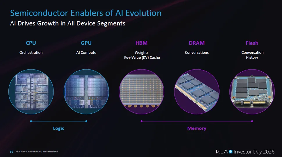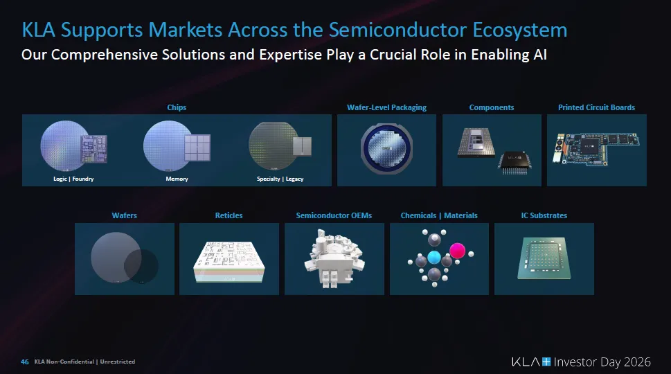 报告强调,AI不仅带来需求爆发,还带来设计数量激增和定制硅时代,使制造复杂度持续上升。结果是:良率能力成为竞争核心,而不是单纯的算力或晶体管数量。 由于所有先进制造都离不开检测和量测,KLA被定位为“无论AI芯片谁胜出都能受益”的基础设施型公司。