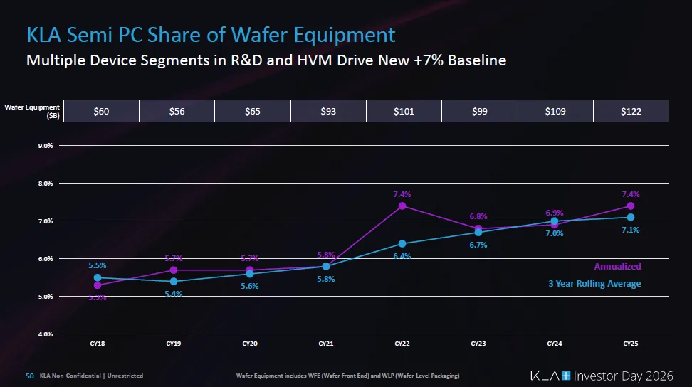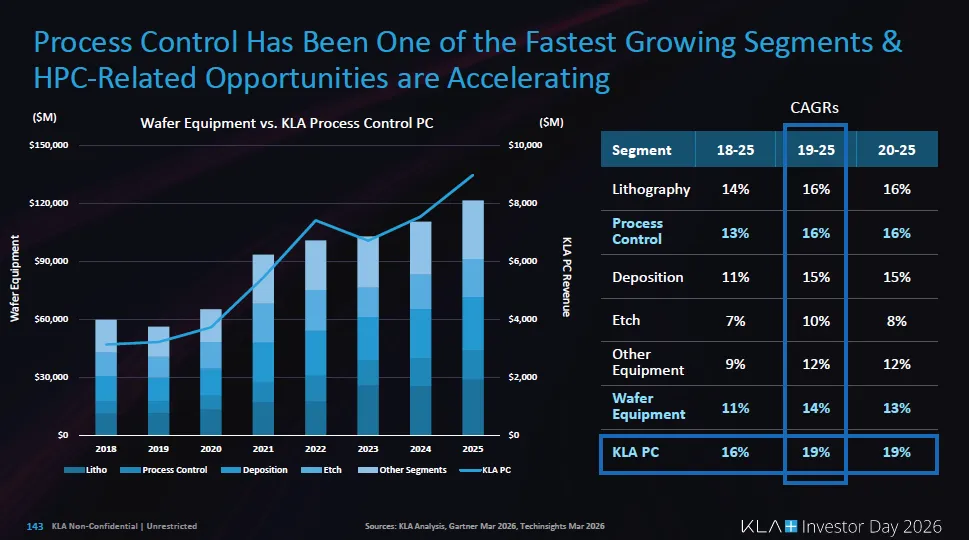 随着先进逻辑、HBM、先进封装同时升级,缺陷更难发现、参数更难控制、单片价值更高,厂商必须投入更多检测与监控,因此工艺控制市场将比整体设备市场增长更快。
