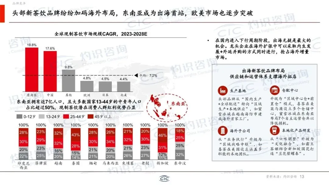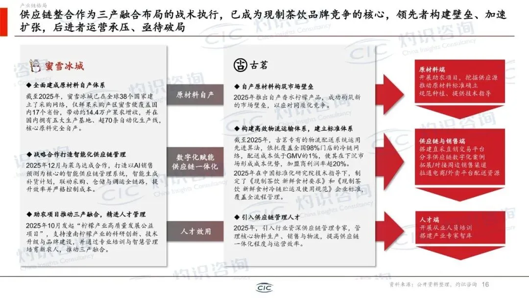 报告深入分析了新茶饮产业链从上游种植到终端销售的全流程。上游原材料市场规模持续增长,但面临气候影响导致的供应稳定性、运输过程中的高损耗率(尤其是鲜果、乳制品),以及终端产品标准化与“手作”体验难以兼顾等核心痛点。行业龙头正通过建设自有种植基地、加大自动化设备和中央工厂投入、构建全球采购与本地供应双轨模式来应对挑战,旨在提升品质稳定性和运营效率。