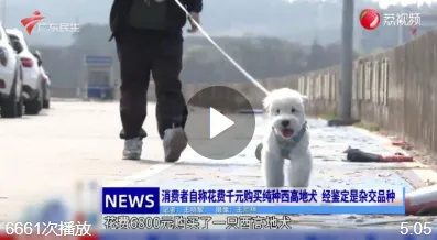 广州番禺 “宠物庄园”以每只 6800 元的价格销售杂交西高地白梗狗,为让犬只呈现纯种立耳特征,商家用塑料支架将狗的耳朵硬撑起来,营造虚假品相;消费者买回家后发现,这些犬只不仅并非纯种,还携带冠状病毒、感染寄生虫,存在严重的健康问题。