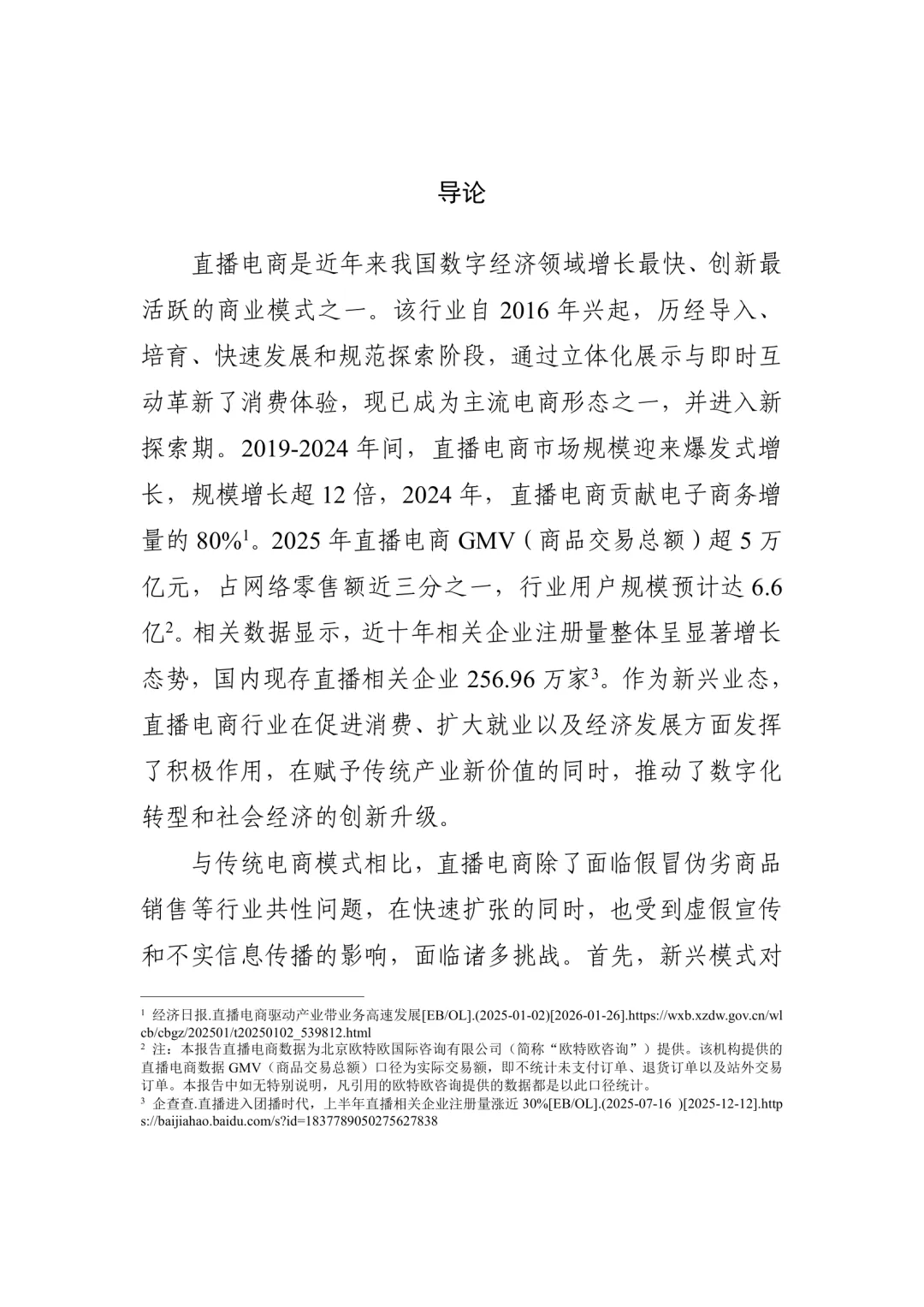 直播电商作为近年来数字经济中增长最快、创新最活跃的商业模式之一,自2016年兴起以来,经历了导入、培育、快速发展和规范探索阶段。通过立体化展示与即时互动,该模式革新了消费体验,已成为主流电商形态之一,并进入新的探索期。2019至2024年间,市场规模实现爆发式增长,增长超过12倍,2024年贡献了电子商务增量的80%。预计2025年直播电商GMV将超过5万亿元,占网络零售额近三分之一,用户规模达6.6亿。相关企业注册量在近十年持续增长,现存直播相关企业超过256万家。直播电商在促进消费、扩大就业和推动经济发展方面发挥了积极作用,同时带动传统产业转型和数字化升级。但其发展过程中也面临诸多挑战。相比传统电商,直播电商在内容质量、治理难度、法律关系认定等方面更具复杂性。部分主播为追求短期流量,出现不文明带货、虚假宣传等问题,影响行业形象。行业涉及多个主体,供应链复杂,选品要求高,“人、货、场”分离增加了责任界定难度。为规范行业发展,政府与平台企业持续推进治理,取得一定成效。市场监管部门受理的直播带货投诉举报数量增幅从2023年的52.5%降至2024年的19.3%,头部主播好评率达92%,中小主播好评率也在90%以上。商品质量和可信度逐步提升,维权渠道畅通,行业生态不断优化。直播电商进入以规范与多元为核心的新阶段,呈现四大趋势:一是治理体系趋向系统化与协同化,形成政府监管、平台治理、行业自律、舆论监督相结合的多元治理模式;二是主播职业化进程加快,网络主播成为国家职业,专业化转型成为核心特征;三是品牌店播模式常态化,由品牌方自主运营的直播形态已成为主流;四是中小主体逐渐成为市场主导力量,头部主播占比下降,中小主播及商家占据重要地位。直播电商在成为数字经济关键增长动力的仍需应对内容治理、责任界定与主体规范等挑战。未来,通过构建协同治理体系、推动主播职业化、发展店播常态化和优化市场结构,行业将朝着更加健康、有序的方向发展。持续的制度完善与生态优化,有助于保障消费者权益、提升行业公信力,进一步激发市场活力,在促进消费、扩大就业等方面持续发挥积极作用。