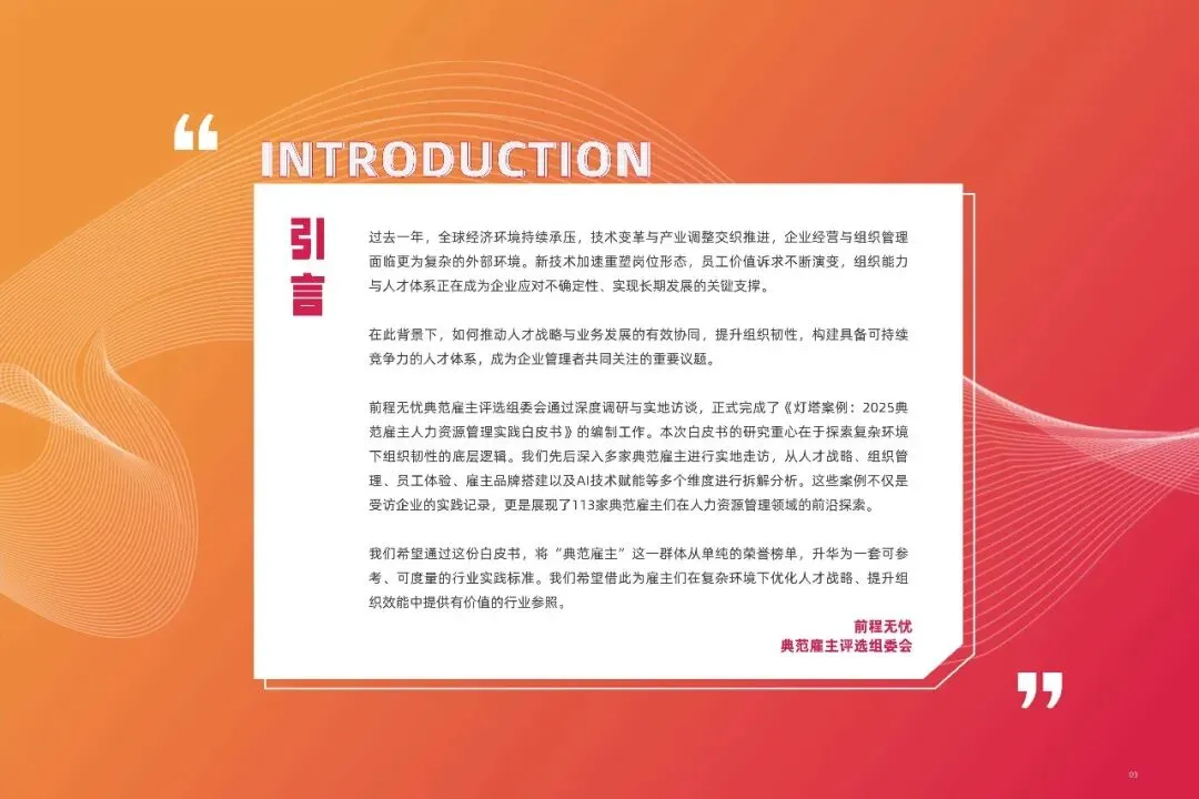 过去一年,全球经济环境持续承压,技术变革与产业调整交织推进,企业经营与组织管理面临更为复杂的外部环境。新技术加速重塑岗位形态,员工价值诉求不断演变,组织能力与人才体系正在成为企业应对不确定性、实现长期发展的关键支撑。