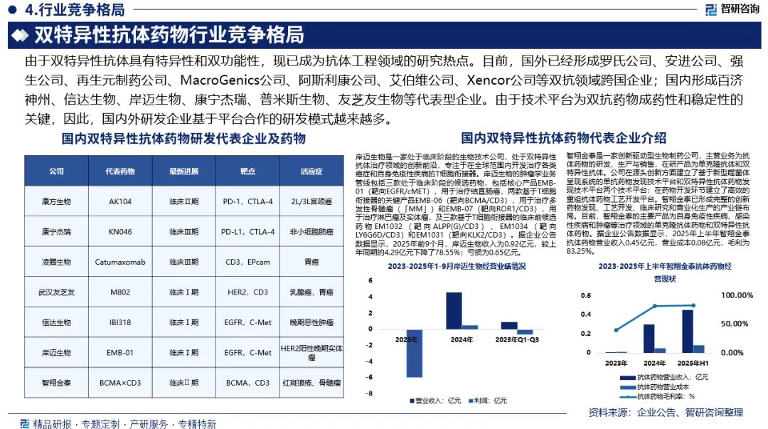 市场趋势:双特异性抗体药物是高效并具有代表性的一类免疫治疗药物。其产业链是一个以前沿科技为引擎、以复杂工艺为基石、以临床价值为核心的高成长性产业。随着设计优化、联合策略创新及耐药机制的深入解析,这类药物有望在更广泛的癌症类型中实现“精准打击”。未来,从“双特异”到“多特异”的跨越,双特异性抗体药物将开启肿瘤免疫治疗的带来新希望。