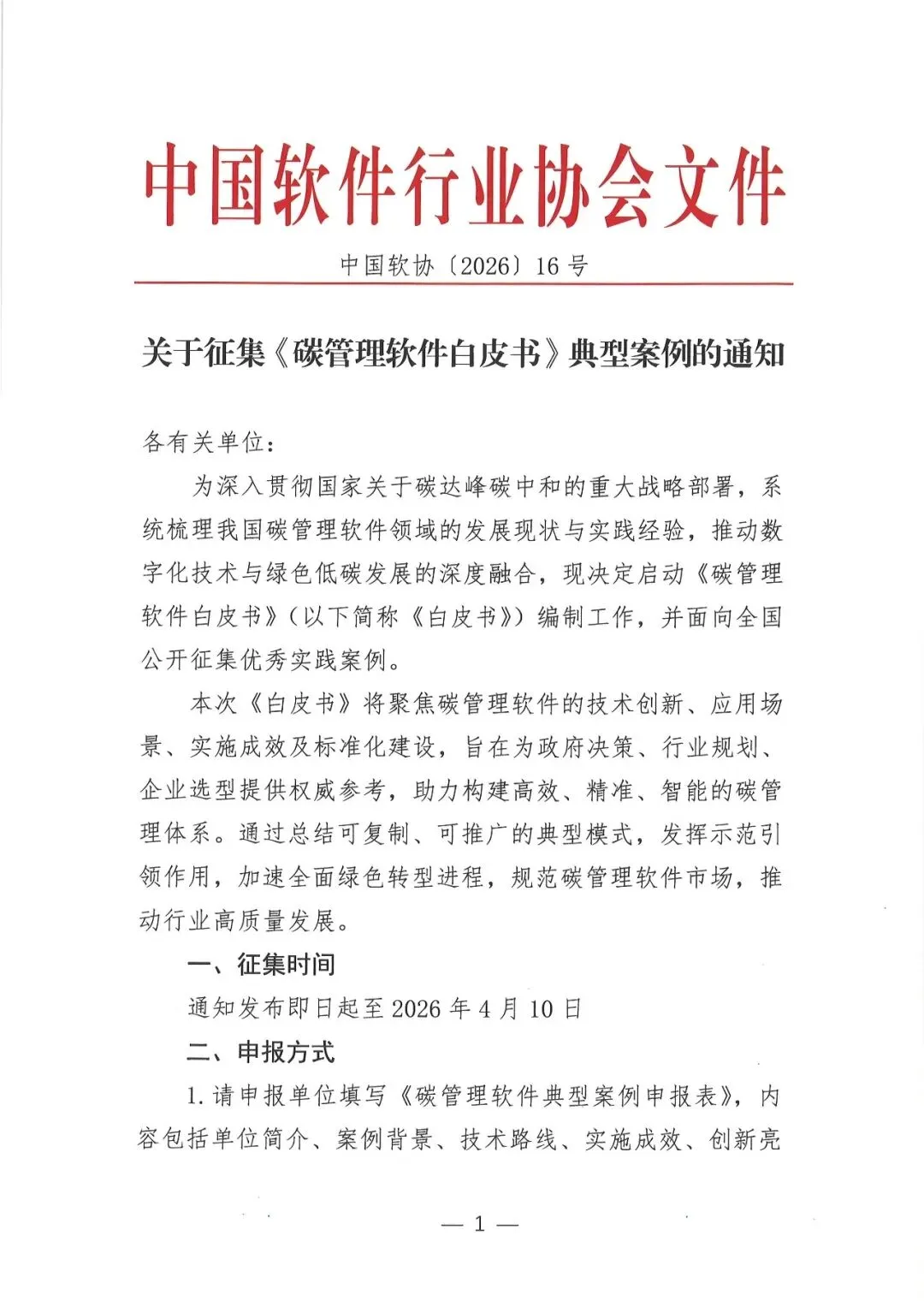 关于征集《碳管理软件白皮书》典型案例的通知