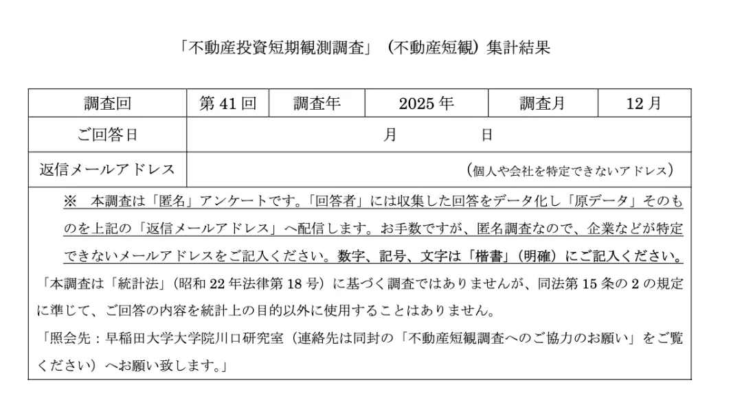 近期,笔者的母校早稻田大学,川口研究室发布了最新一期 《不动产投资短期观测调查(第41回)》,该报告汇集了日本主流机构投资者对未来半年房地产市场的判断。