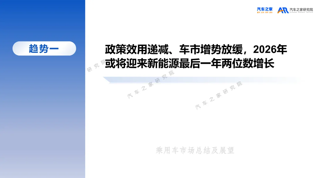 - 政策效用递减,车市增势放缓,2026 年新能源或迎最后一年两位数增长