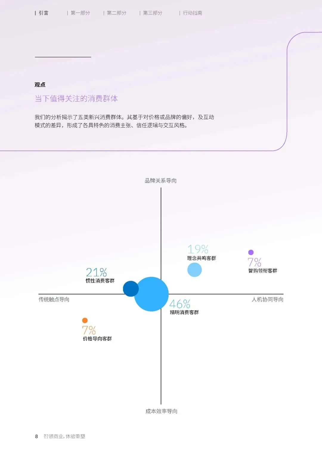 传统的按年龄、收入、地域划分消费群体的方式,已经无法准确描摹当下的消费者画像。调研基于消费者对价格或品牌的偏好,以及互动模式的差异,划分出五类全新的消费群体,他们有着截然不同的消费主张、信任逻辑与交互风格,也决定了未来商业体验的设计方向。