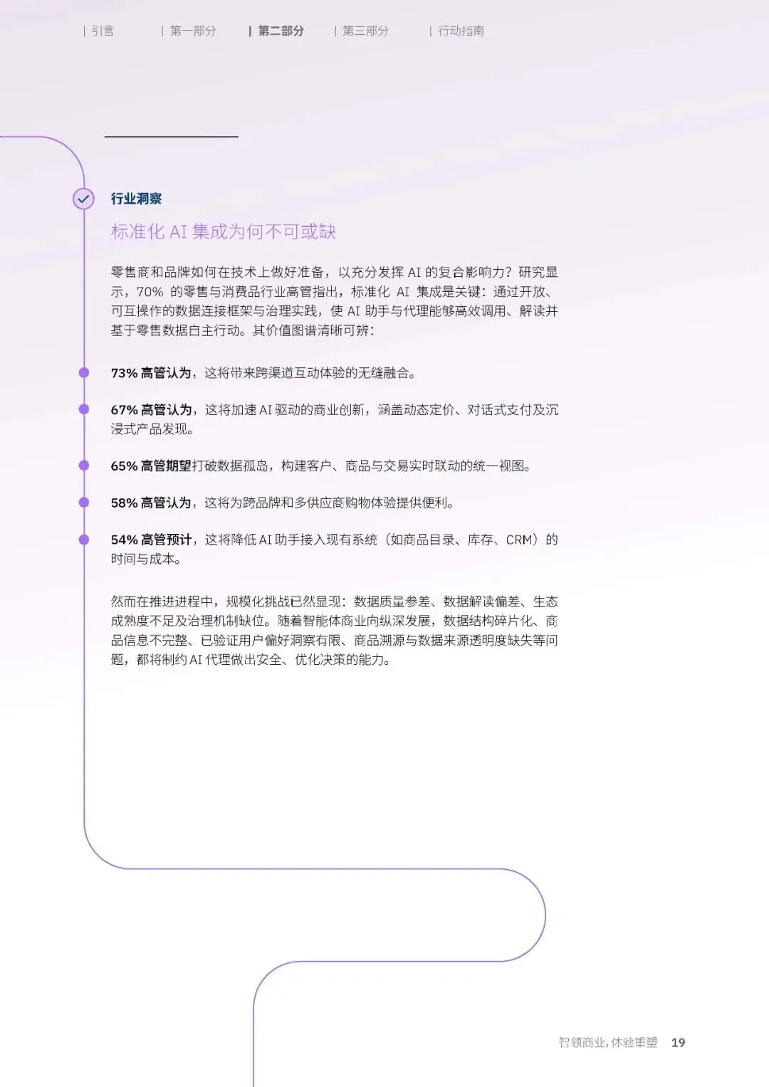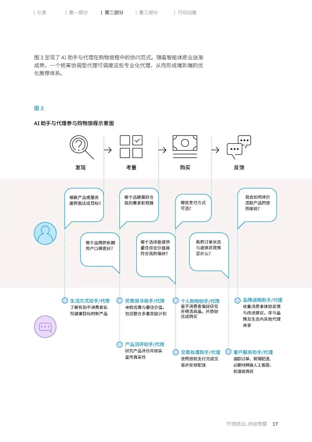消费者已经为 AI 代理的到来,做好了充足的准备。调研显示,消费者最期待的 AI 代理,集中在四个核心方向。第一类是优惠搜寻代理,能够全网实时追踪价格波动,融合促销与积分权益,主动向消费者推送最佳的购买时机。第二类是客户服务代理,能够全天候响应消费者的需求,提供咨询服务、解决使用问题,跨渠道提供个性化的服务支持。第三类是产品测评代理,能够高效解析海量的产品信息,优先匹配符合消费者个人伦理与价值取向的商品。第四类是个人购物代理,能够基于消费者的审美偏好、使用习惯与预算,实现精准的商品选购。这些期待的背后,是消费者对购物效率的极致追求,他们希望 AI 能帮自己解决购物过程中那些繁琐、耗时的环节,把更多的时间留给真正的决策与体验。