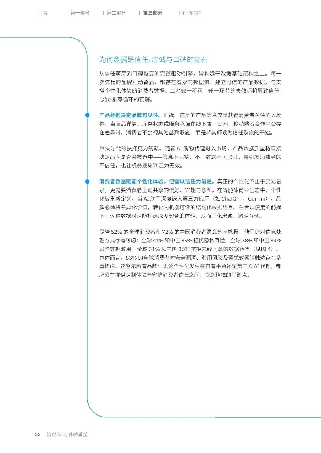 信任受损的直接后果,就是消费者的流失。23% 的智购领衔客群,已经因为数据安全问题,更换了自己选择的品牌。一旦品牌在消费者数据处理上出现问题,支撑品牌忠诚的信任基石就会随之消失,连带瓦解整个口碑传播循环的驱动力。而在 AI 时代,这种影响会被进一步放大。产品数据的质量,直接决定了品牌是否会被 AI 代理选中。如果品牌的产品信息不完整、不一致或者不可验证,不仅会引发消费者的不信任,更会直接被 AI 的机器逻辑判定为无效信息,失去进入消费者决策视野的资格。