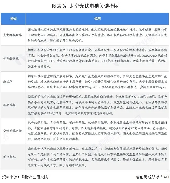 太空光伏电池关键指标