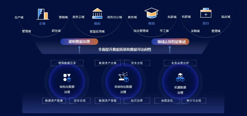 不再是死板的 ETL,而是构建业务资产知识图谱。通过增强型数据目录,实现业务对象与数据的灵活连接。关键词:即时治理、业务认知模型、Data Fabric。2. 非结构化数据:AI 驱动的知识化