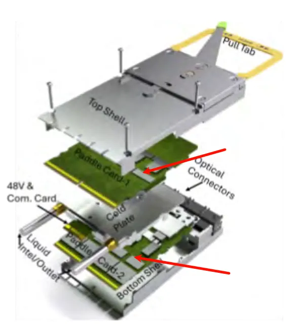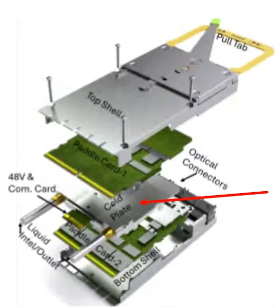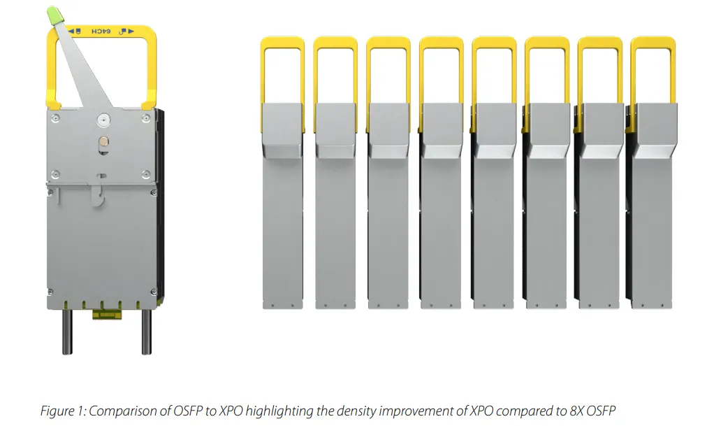 极致带宽需求 分布式训练集群需要在数万个加速器间移动海量数据,对网络吞吐量的要求远超传统工作负载。这也是我们星球中之前就说NV不会大规模使用CXL的原因之一(在GTC之前,市场就有人在传GTC上老黄要提CXL)。 高可靠性要求 在包含 5 万+光链路的大规模网络中,单个模块故障在统计上不可避免。但每一次故障都可能导致价值数百万美元的训练任务中断,造成计算资源的严重浪费和网络资源碎片化。 液冷集成需求 现代 AI 加速器产生的热负载已超出传统风冷能力。液冷正在成为超大规模 AI 数据中心的基础设施标配,这对每个机架内的组件都提出了严格的热设计约束。关于XPO的液冷,目前市场上讨论的人还不多,因为目前光模块跟液冷并没有啥关系,可能很多人还并不知道XPO里面是有冷板的。 功耗效率压力 高密度机架运行在有限的功耗预算内,网络消耗的每一瓦都意味着计算资源的减少。光学互连必须实现显著更低的每比特功耗。 密度瓶颈 物理空间是数据中心的稀缺资源。当前 OSFP 标准每 1U 仅支持 32 个模块,密度不足迫使网络架构师部署更大、更复杂的多层网络拓扑,增加了延迟、成本和布线复杂度。