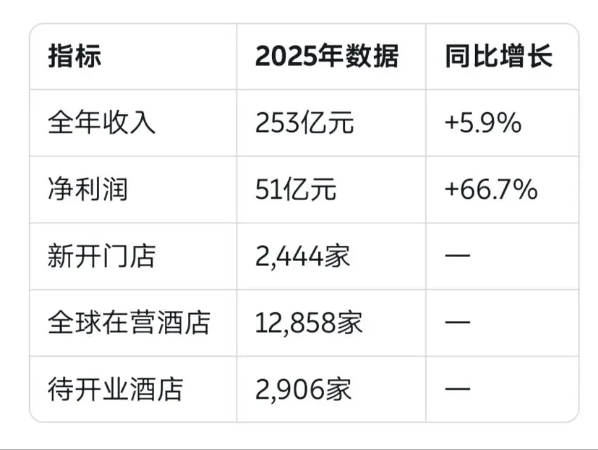 华住全年利润增长66.7%,远高于收入增速。这背后是轻资产模式的威力。