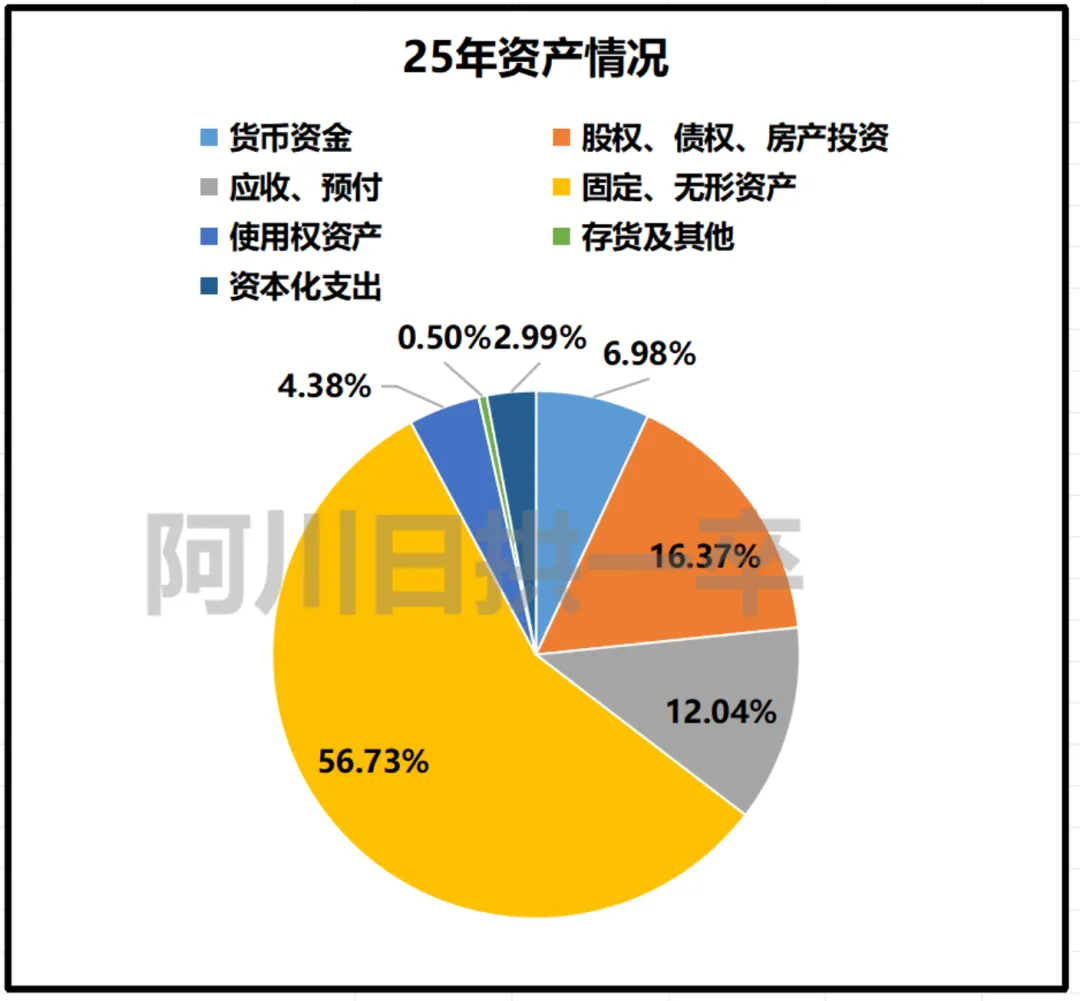 货币资金+股债投资占比逐年攀升,25年达到23.36%。