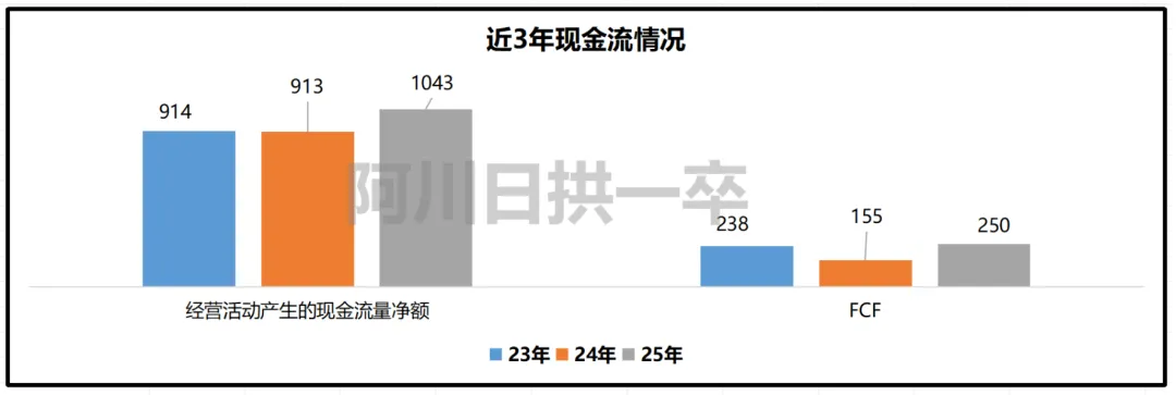 现金流稳健,24年大额投建资产,所以FCF很低。25年FCF为250亿,同比+53.22%。
