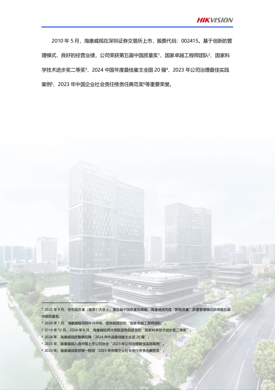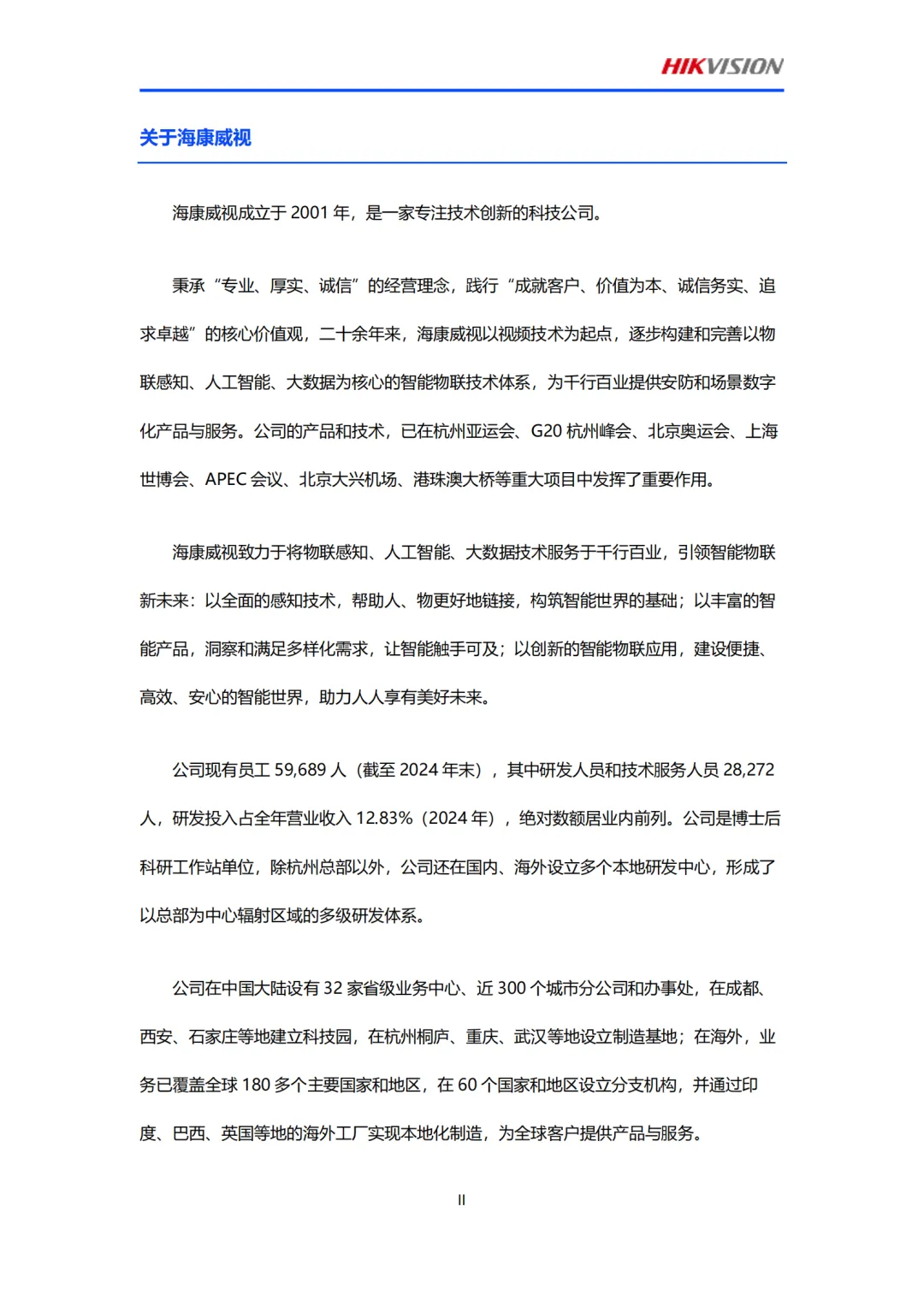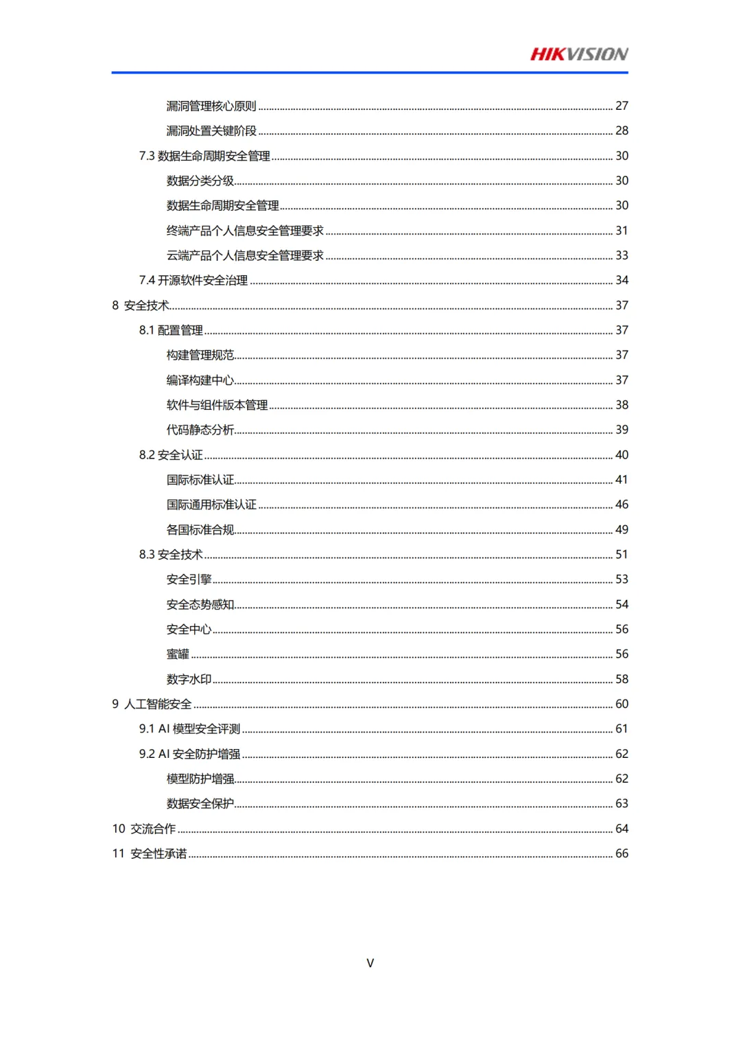 海康威视作为行业龙头,以核心数据为支撑构建了完善的安全体系:2024 年末公司研发人员达 28272 人,研发投入占营收 12.83%,为安全研发奠定基础;建立了包含网络与信息安全委员会等多部门的组织架构,打造从概念到维护的全流程安全研发管理体系,还通过了 ISO/IEC 27001、IEC 62443-4-1 等十余项国际权威认证。在技术层面,公司自研入侵防御、协议防火墙等安全引擎,搭建 AI 模型安全评测平台,实现数据全生命周期安全管理,同时通过开源软件安全治理、蜜罐、数字水印等技术,构建多维度安全防护能力,还与全球安全组织、白帽子研究者等开展深度合作,完善安全生态。