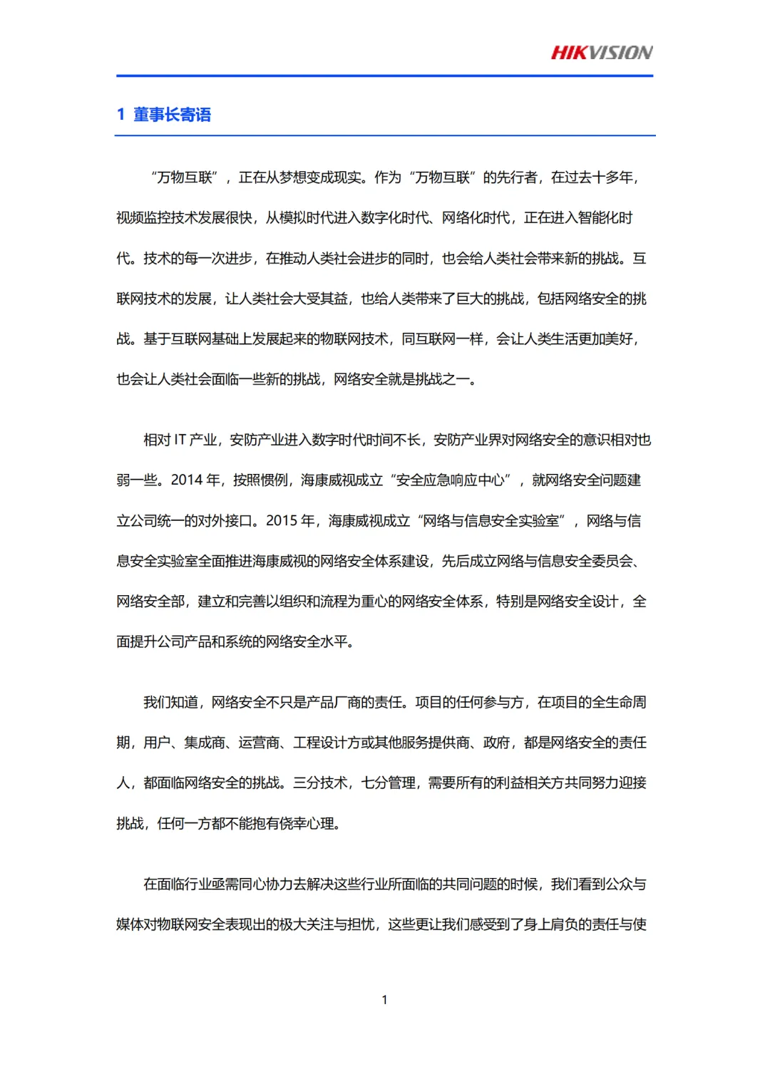 海康威视 2026 年版网络安全白皮书立足智能物联行业发展现状,全面阐述了物联网安全威胁、安防产业安全痛点,并系统披露了企业在安全治理、技术、研发等方面的实践与能力,为智能物联领域网络安全建设提供了实践参考。