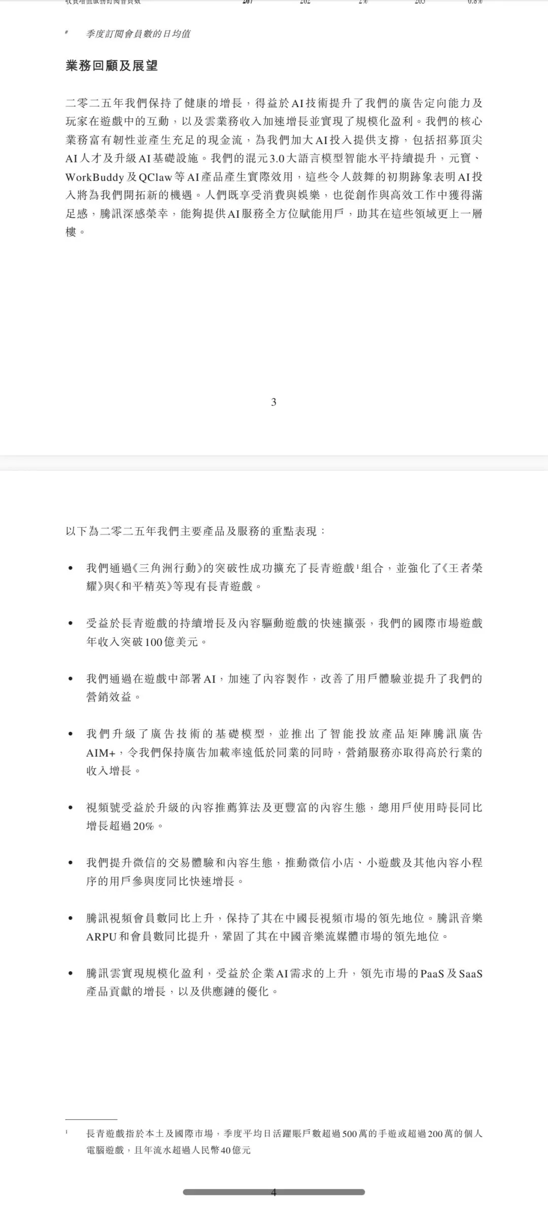 可以看到,企鹅在财报里面强调了AI在业绩增长上的作用。特此是在游戏业务和广告业务。