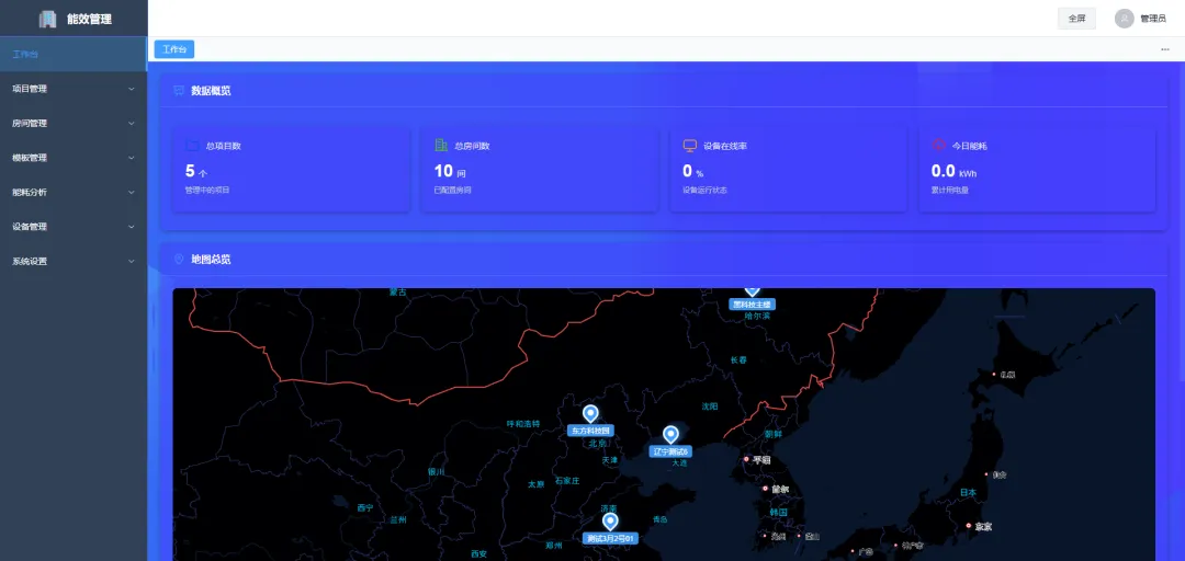 用户可通过工作台,直观看到当前账号下所有项目地理位置,通过地图可以快速访问,或者通过项目列表进行查看。