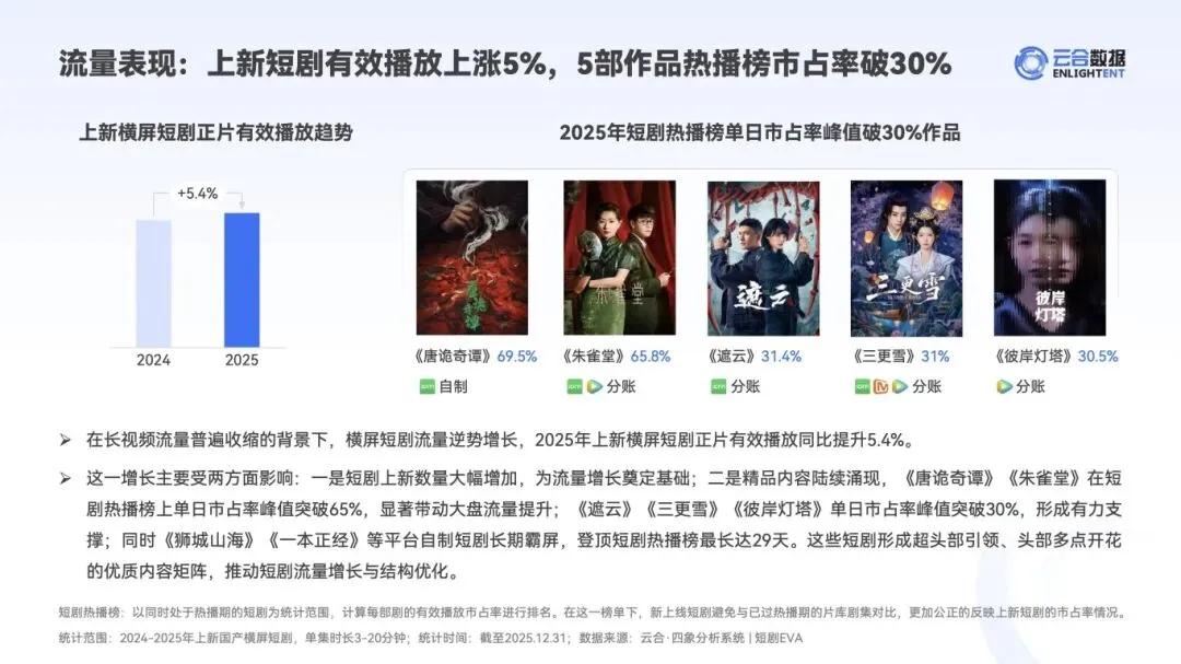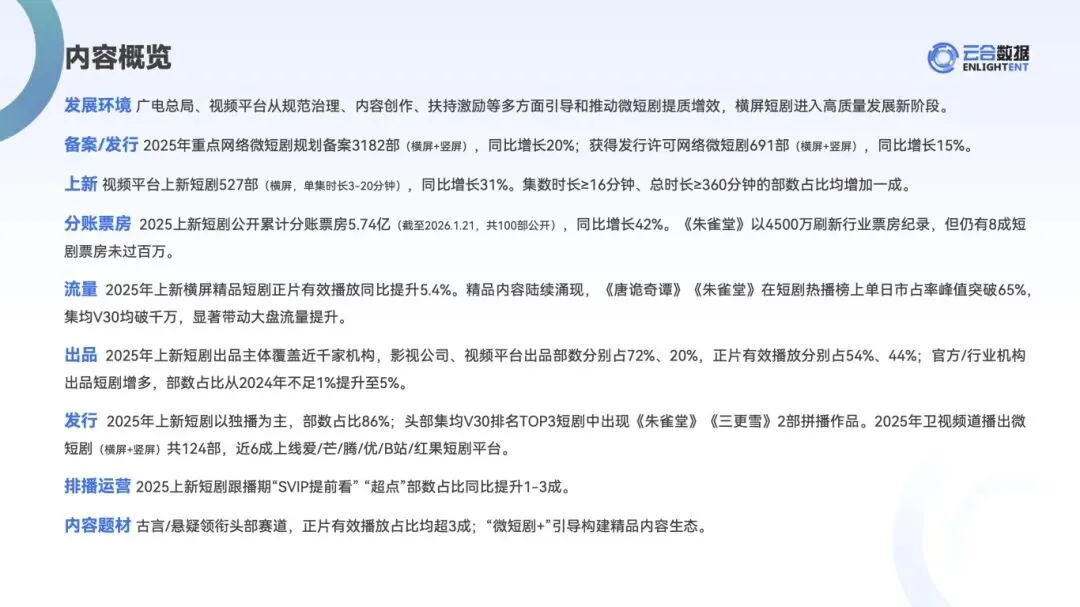 精品短剧、横屏短剧、分账票房、政策规范、平台扶持、题材分布、排播运营、流量表现