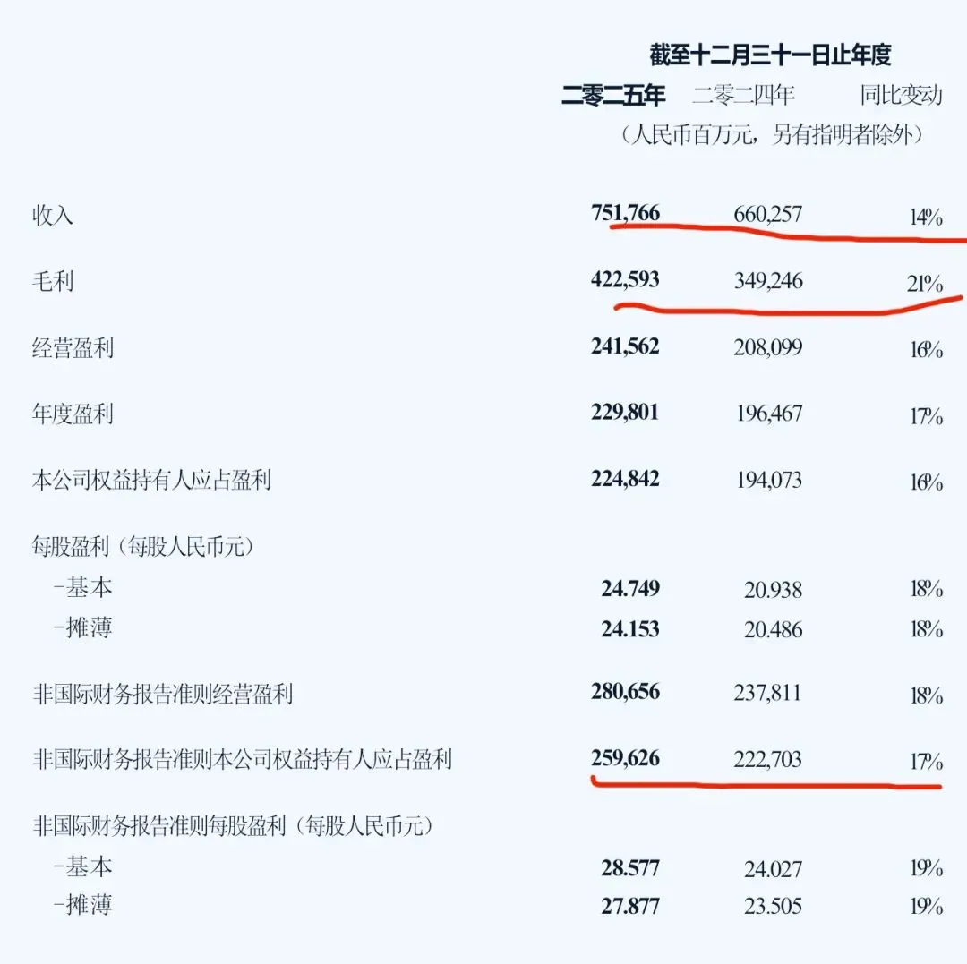 非国际准则归母净利润,全年为2596亿元,同比增长17%。单第四季度为647亿元,同比增长17%。