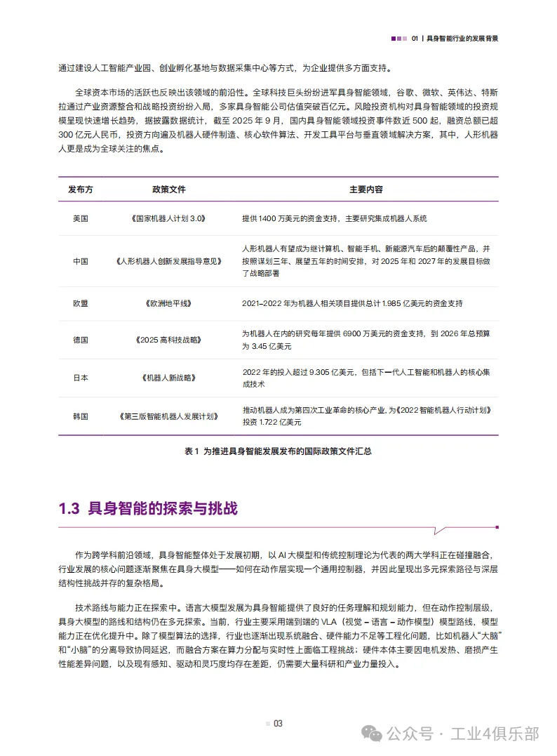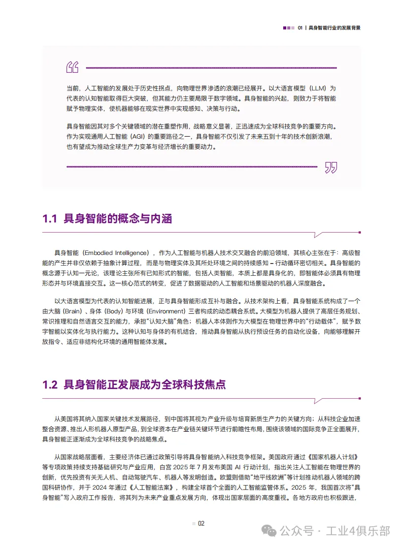 具身智能作为人工智能与机器人技术的交叉领域,核心是让机器通过物理实体与环境的感知-行动循环产生智能,是实现通用人工智能的重要路径,已成为全球科技竞争焦点,多国出台政策支持,资本市场也高度关注,但其发展仍面临技术路线探索、数据瓶颈、成本与商业化等问题,其中数据匮乏是核心制约,现有真实世界物理互动数据量远未满足需求。