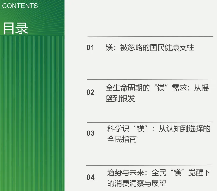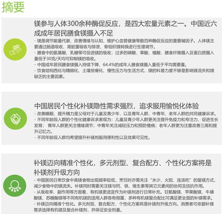 随着国民健康意识的提升,补镁逐渐从“小众需求”成为“全民刚需”,中国补镁市场正处于快速发展的启蒙期,同时也呈现出诸多新趋势、新需求。