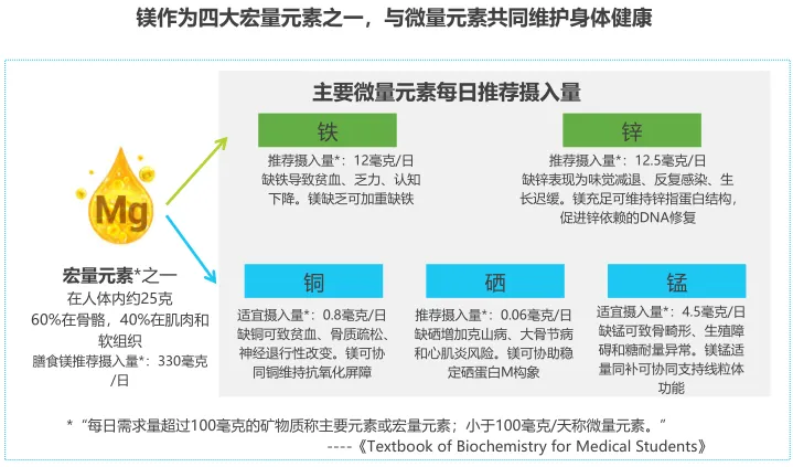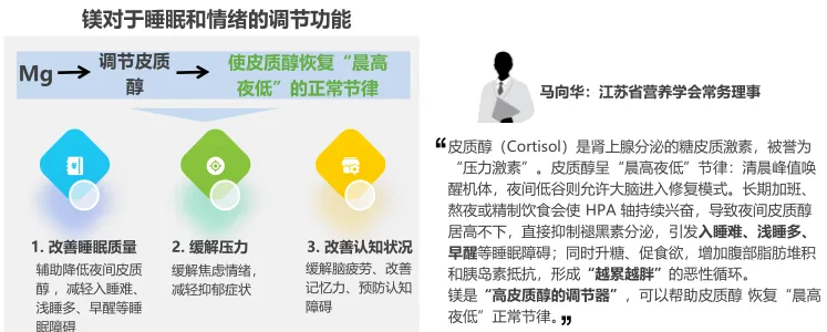 推动医养融合,将镁营养纳入慢病管理:在医学院课程和医生继续教育中,强化镁营养与慢性病关系的内容;鼓励基层医疗机构开展镁营养评估,将镁缺乏纳入高血压、糖尿病、焦虑症等常见病的辅助管理路径,让医生成为科学补镁的指导者。