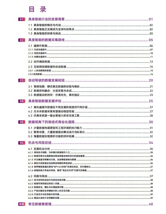 风险:涵盖技术路径快速迭代的不确定性、数据可用性验证的高投入、数据安全与伦理监管、产品功能安全保障缺失、行业标准缺失导致的生态碎片化,以及商业化进程不及预期的长期性挑战。