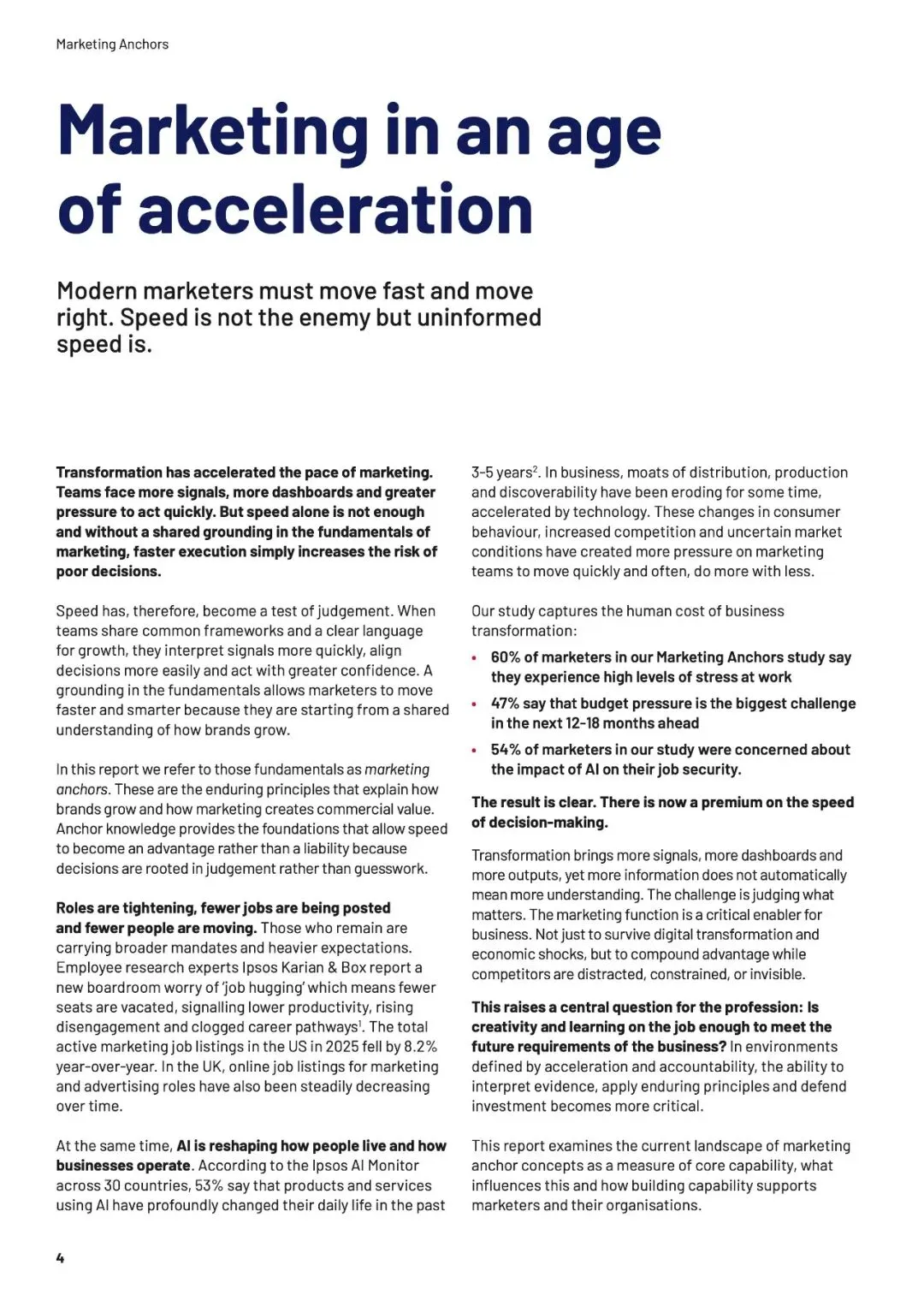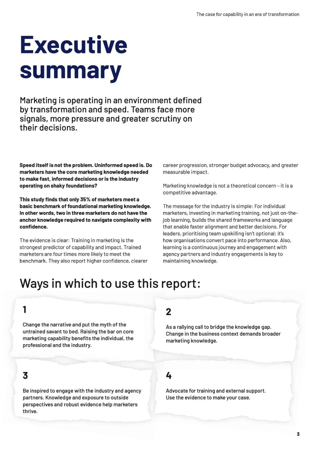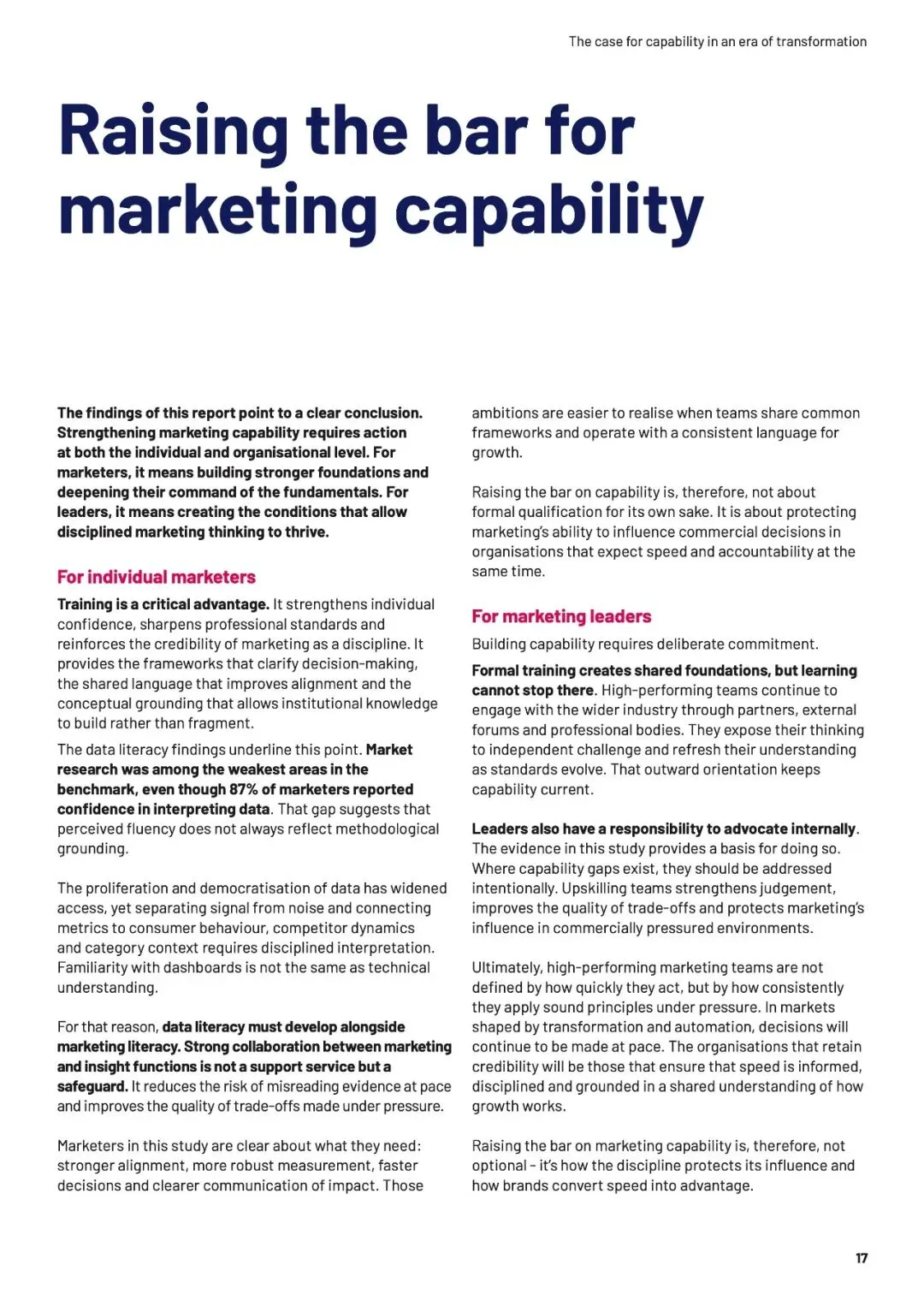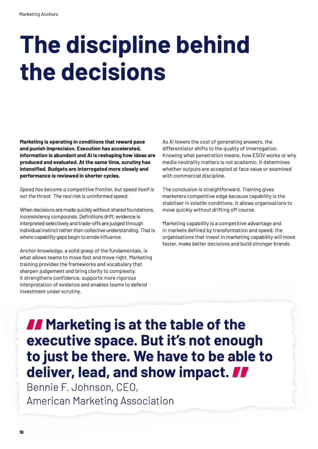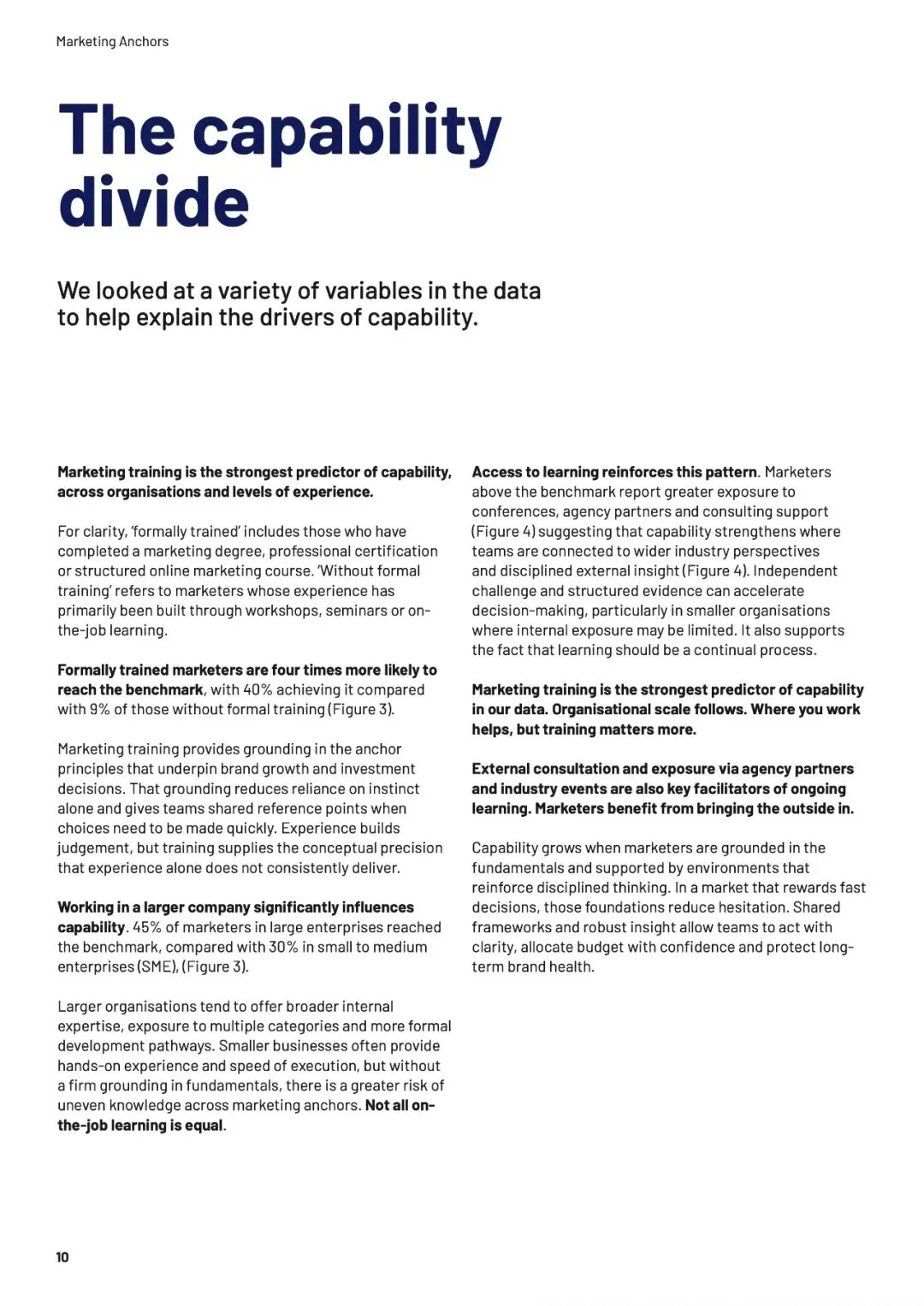 速度本身不是问题,无知的加速才是。当团队缺乏“营销锚点”——品牌增长的基本框架与共同语言时,信息越多,决策越像赌博。数据揭示,培训不仅构建认知,更能转化为“能力红利”:受训者在预算争取、职业信心和可衡量影响力上,均领先未受训者超20个百分点。AI放大了这一鸿沟——生成答案越容易,提出正确问题的能力就越稀缺。