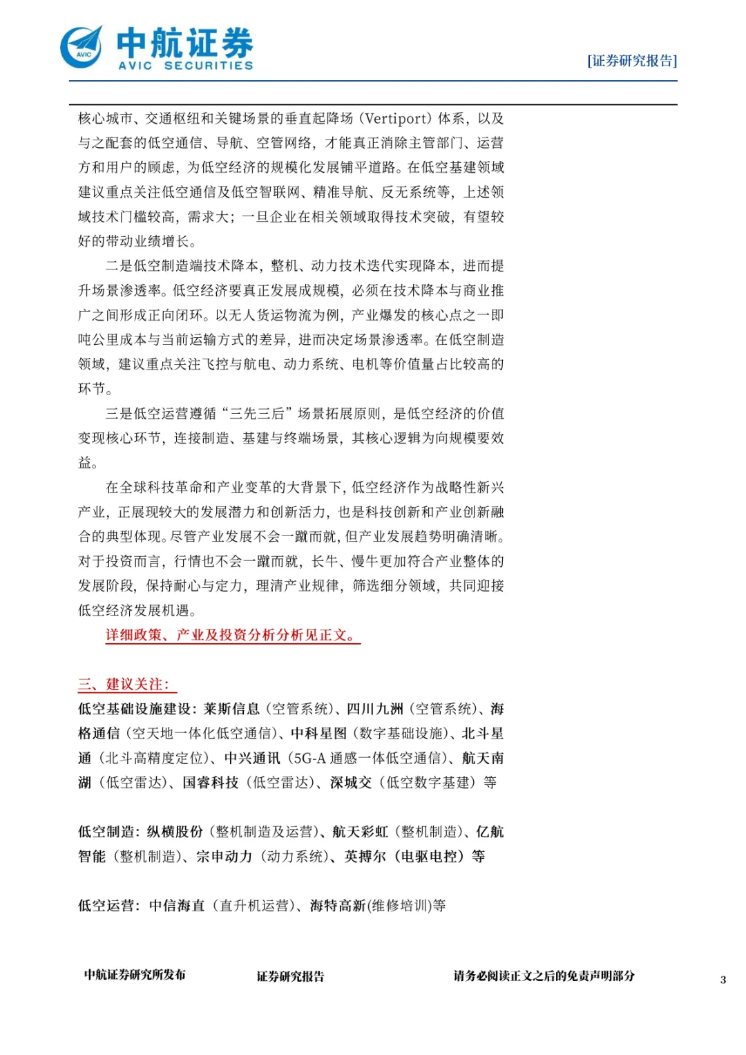1、基建适度超前:关注低空通信及智联网(海格通信、中兴通讯)、精准导航(北斗星通)、低空雷达(航天南湖、国睿科技)等核心环节;