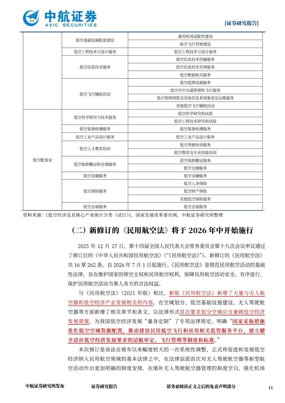 法律层面:新修订《民用航空法》将于 2026 年 7 月正式实施,首次以法律形式明确空域划分需兼顾低空经济发展,建立无人驾驶航空器适航许可、唯一产品识别码等制度,填补了低空飞行器管理的法律空白,为产业规范发展提供基础性保障。