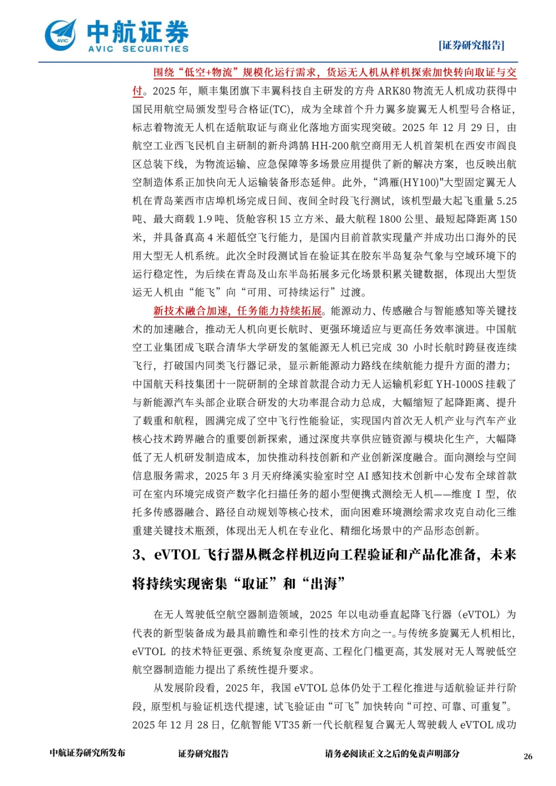适航与出海突破,亿航智能实现 “TC+PC+AC+OC” 四证齐全,峰飞航空 V2000CG 获三证聚焦货运场景,2026 年将有更多机型进入适航审定关键阶段,海外订单有望实质性落地。