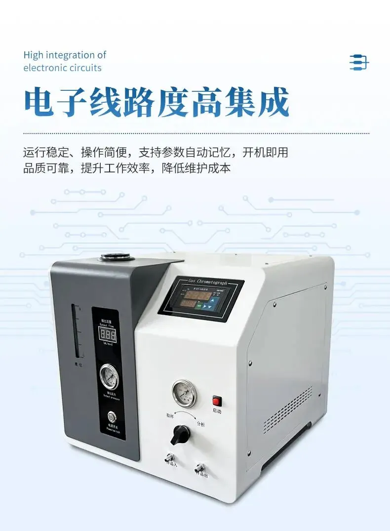 - 一体化集成设计:将高纯氢气发生器与分析仪完美结合,通过一次进样完成气体中含量的精确分析。