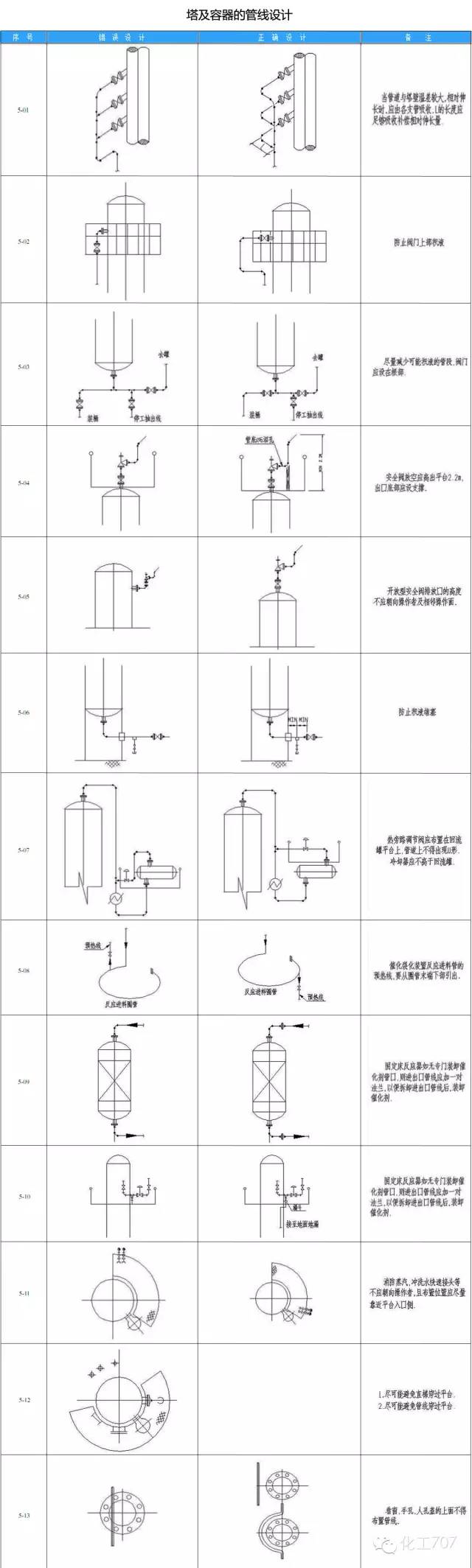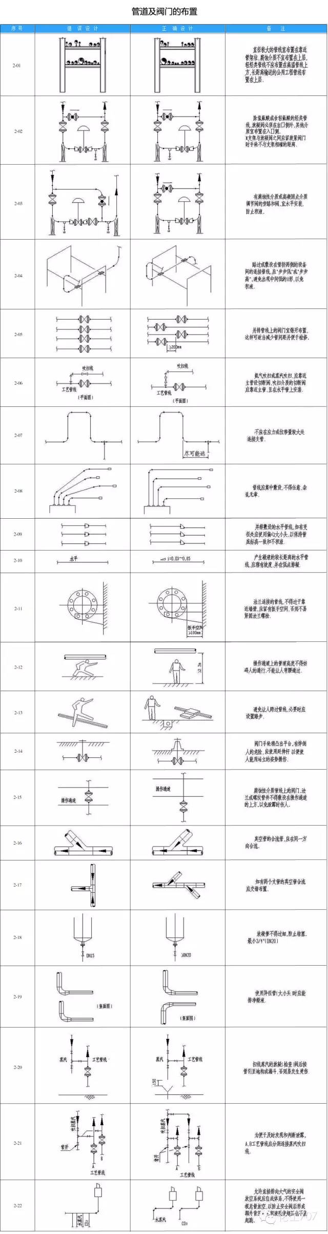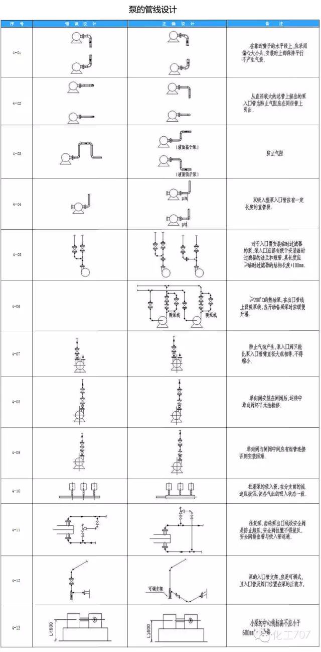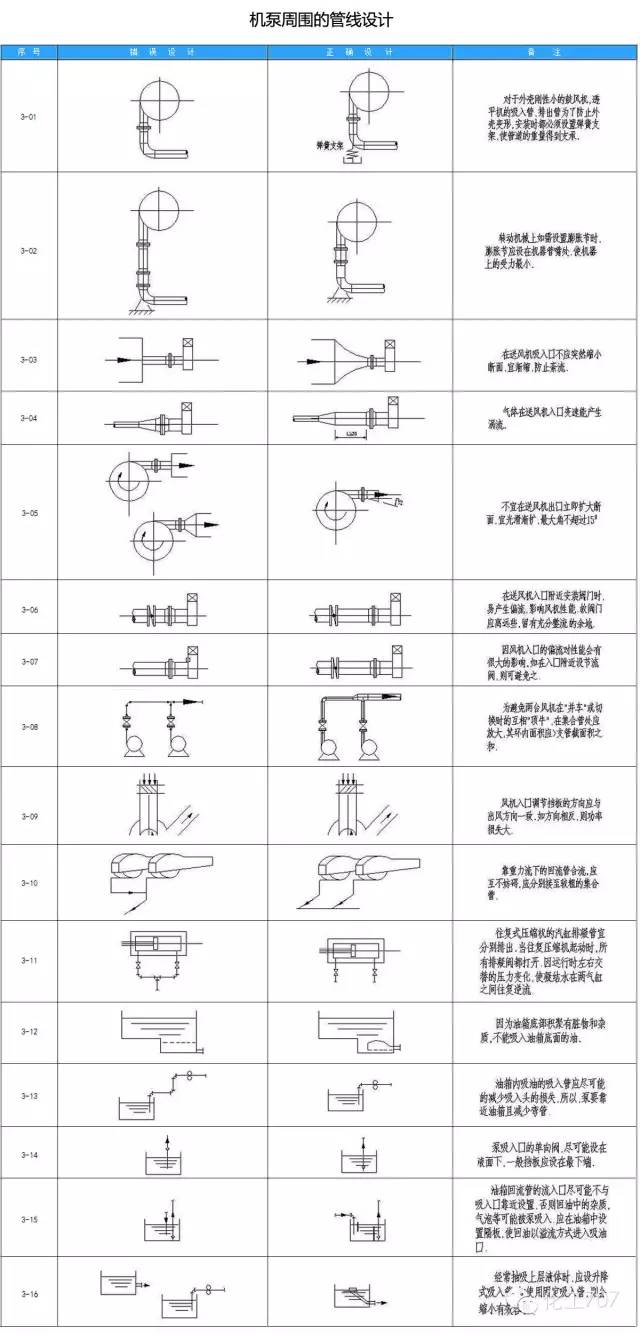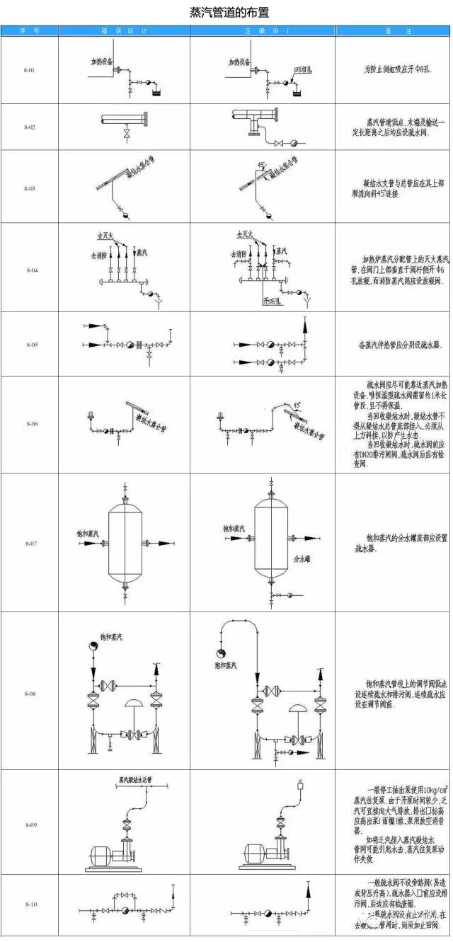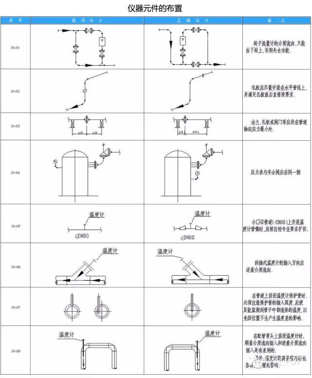 在配管设计中经常由于设计人员的疏忽和经验不足缺乏认真考虑造成管道布置不合理、操作检修不便、外表不美观等失误。为提高设计质量,减少常识性错误的发生,小编以简图和简要说明的形式,对照指出配管设计中常见的设计不良和设计良好的实例。