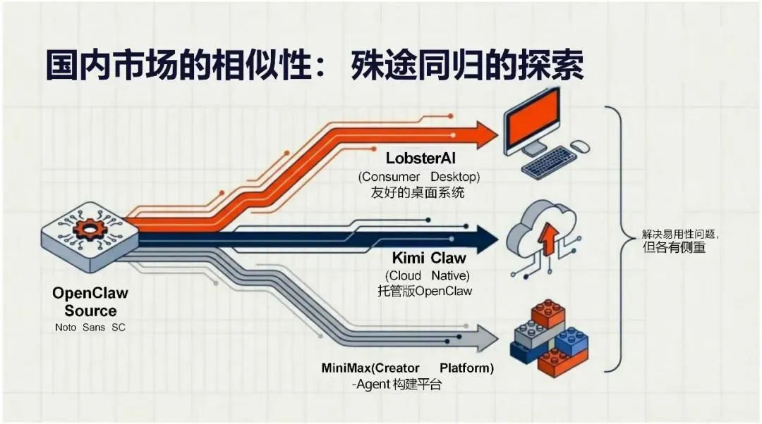国内已涌现多款同类Claw类工具,各有本土化侧重,弥补了OpenClaw的技术门槛高、企业适配弱等问题:LobsterAI是UI化的OpenClaw,适配微信等本土办公场景;Kimi Claw为云端托管版,即开即用;Zeelin-Claw则是企业级发行版,像RedHat之于Linux,通过最小权限、人机回环等解决企业合规与审计需求。