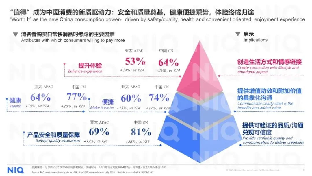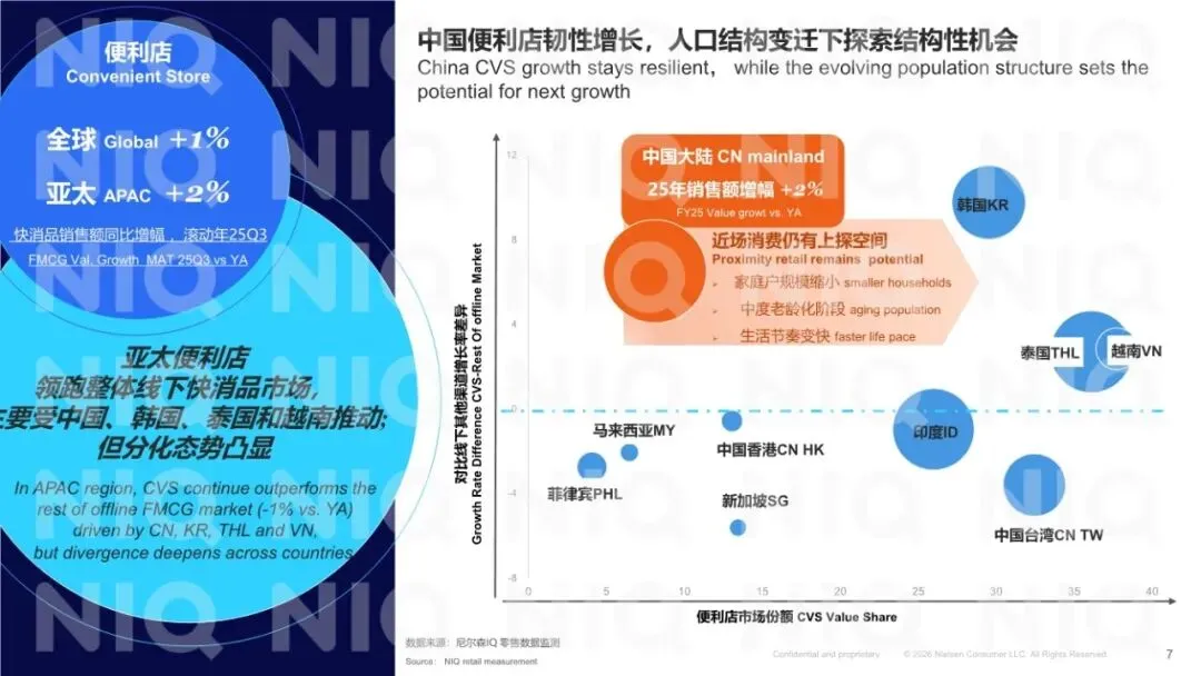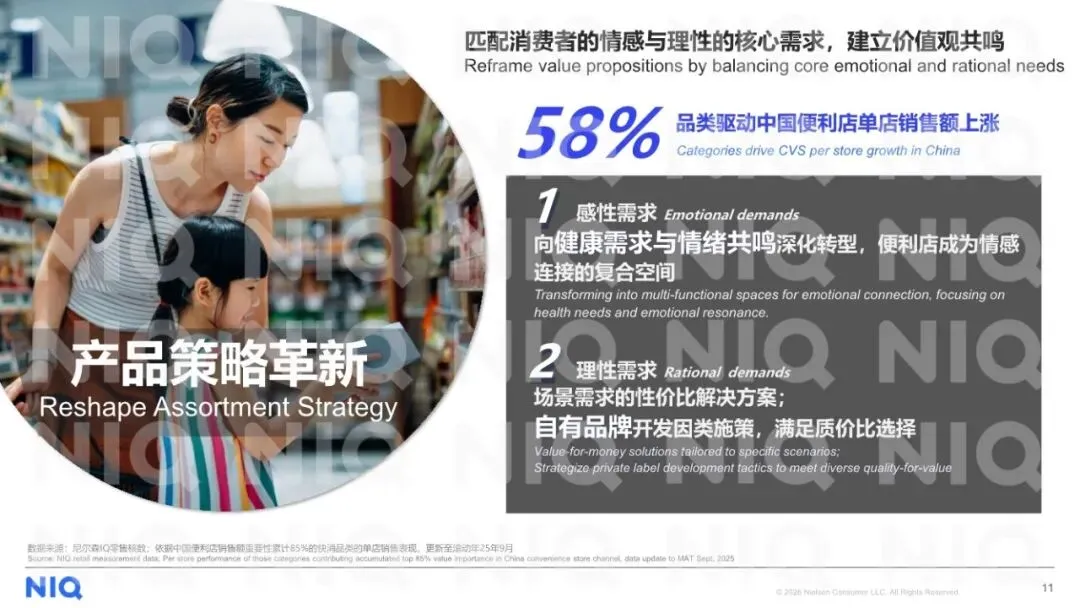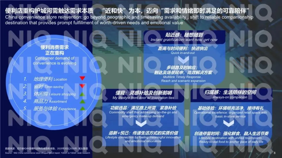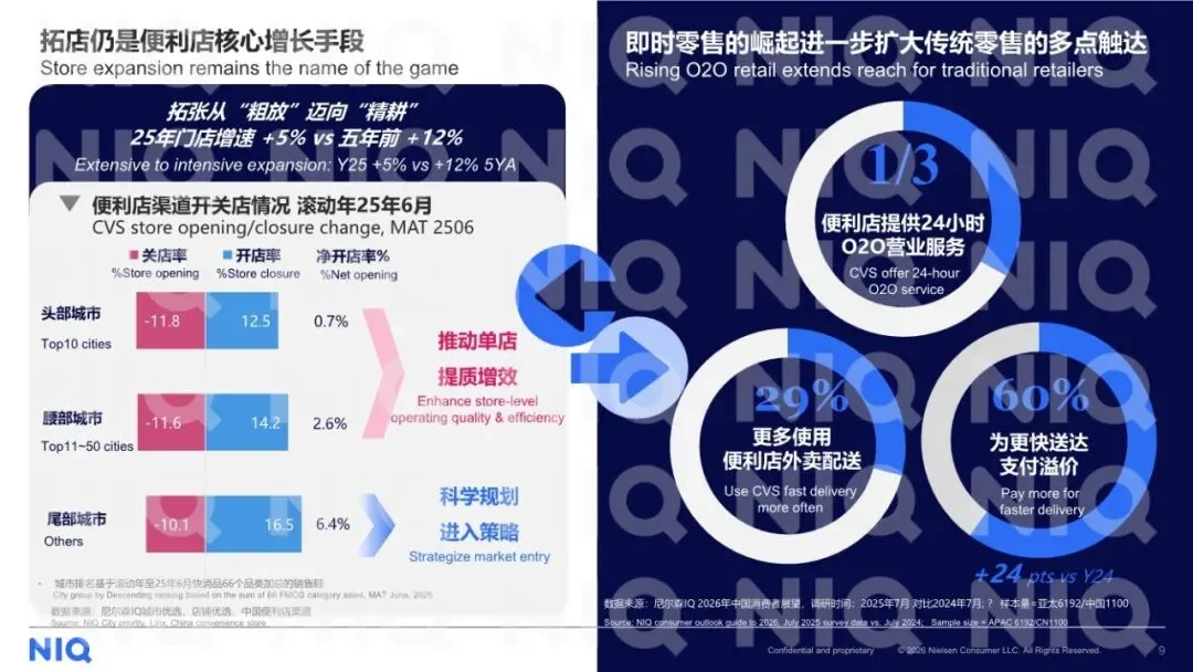好的,我已详细阅读并分析了这份由尼尔森IQ(NIQ)发布的《2026年中国便利店行业面临的机会和挑战报告》。这是一份数据扎实、洞察精准、兼具宏观趋势与微观操作指南的行业战略报告。报告系统性地揭示了中国消费者心态与行为的深层变迁,并在此基础上,为便利店行业如何在新消费时代重构价值、实现增长指明了清晰的路径。一、 核心结论:从“地理便利”到“价值共鸣”的范式跃迁报告的核心论断是:中国便利店行业正经历一场根本性的价值重定义。传统的、以“近”和“快”为核心的1.0模式(地理与时间便利)已不足以驱动未来增长。未来的成功取决于能否进化为 “即时需求与情绪价值的可靠陪伴者” ,即在满足功能性便利的基础上,与消费者建立更深层次的“价值共鸣”与“情感连接”。报告首先描绘了独特的中国消费心态全景,这是理解所有行业趋势的基石: ◦ 理性面:消费者财务状况感知向好(41%感觉“更好”),但对“经济下行”的担忧高居榜首(30%)。这导致其消费策略高度理性,管理开支时首选“减少非必要开支”(67%)和“寻找更多促销”(58%)。 ◦ 情感面:与亚太整体关注外部危机不同,中国消费者对“自身及家庭福利/幸福感”的关注度极高(30%,排名第二)。这揭示了在理性消费的背后,是强烈的向内探寻、追求生活品质与情感满足的驱动力。2. “值得”成为新质消费驱动力:消费者愿意支付溢价的因素排序清晰地指明了价值方向:产品安全与质量(81%) 是基石,健康(77%) 与 便捷(74%) 是核心加速器,而 提升体验(64%) 则是最终归宿。这构成了一个完整的“价值等式”。1. 增长韧性但模式转型:便利店渠道仍保持增长韧性,但门店扩张已从过去粗放式的“高速增长”(5年前年增12%)进入 “精耕细作” 阶段(2025年增速降至5%)。门店开关店数据显示,市场进入存量优化阶段,尾部城市成为净增店主力,而头部城市需靠“提质增效”驱动。2. 即时零售重塑“便利”边界:即时零售(O2O)的爆发是报告强调的最大变量之一。它打破了便利店传统的时空限制: ◦ 时间延伸:激活了深夜(晚8点-早4点订单增18%)、赛事季(欧洲杯凌晨订单翻倍)等增量场景。 ◦ 场景释放:满足了旅途(酒店订单翻倍)、休闲(下午茶订单增40%)等多元即时需求。 ◦ 消费者习惯:更多人使用便利店外卖(+24pts),并愿为更快送达支付溢价。这使得便利店的竞争从 “到店辐射半径” 扩展到 “线上配送生态”。1. 商品力重构:从“货架”到“生活方式解决方案”• 深化健康与悦己:鲜食品类需超越“饱腹”,进化为“健康解决方案”,强调优质蛋白、复合碳水、膳食纤维及清洁标签(如零添加、非转基因),直接回应国民体重管理与健康管理需求。• 发展“质价两全”的自有品牌:自有品牌增长逻辑已从单纯“低价吸引”升级为 “价值认同”。消费者选择自有品牌的前三大原因是:更实惠、物有所值、更好的质量。报告以低温鲜奶和无糖茶饮为例,说明成功的自有品牌需在夯实品质基础上提供“平价好物”,并注入产地、成分等差异化价值叙事。• 响应场景化性价比需求:报告数据指出,满足家庭囤货、夜间放松、一人食等具体场景的性价比商品(如大包装零食、高端啤酒、即食菜),是驱动单店增长的重要品类。便利店需从单纯的商品买卖场所,跃迁为承载日常情绪释放的 “邻里空间”。这要求:• 功能叠加:成为满足休闲购物、灵感补给、生活陪伴的复合空间。• 体验深化:通过明亮的环境、有礼的服务、以及能创造停留时间的业态(如强化鲜食品类,融入社区生活节奏),建立“归属感”。• “线下精耕+即时零售”全域触达:线下门店网络需科学规划、精细运营以提升单店效能;线上即时零售则需全力投入,以捕捉全时段、多场景的“即时欲购”需求,最大化“即想即得”的竞争力。• 需求敏捷响应:通过商品组合(健康、尝新、悦己)、自有品牌开发、鲜食创新,形成快速响应消费者具体需求的能力。这是一份极具前瞻性和实战价值的行业指南。其核心优势在于:• 数据权威,洞察深刻:基于NIQ一手消费者调研与零售核数数据,准确捕捉了“理性与情感双轨”这一中国独有的消费心态,并以此贯穿全篇分析。• 框架清晰,路径明确:从消费心态变迁,推导出行业价值重构的必然性,进而从商品、渠道、运营三个维度给出系统性的升级方案,逻辑闭环。• 案例具体,可操作性强:对鲜食、自有品牌、即时零售场景的剖析非常具体,为零售商提供了可直接借鉴的思路。总结:报告清晰地指出,中国便利店行业的下一站竞争,将是 “商品差异化价值”(健康、悦己、质价比)、“渠道情感化角色”(邻里陪伴空间) 与 “运营全域化能力”(线下精耕+O2O) 的三重较量。那些能成功将自己重塑为消费者日常生活中“可靠且懂我的陪伴者”的企业,将在新一轮行业进化中赢得主导权。部分内容预览