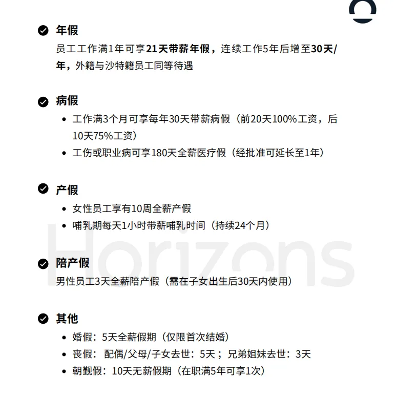 《2025沙特阿拉伯出海白皮书》指出,沙特依托“2030愿景”开放外资,允许100%外资持股并享5年免税,2024年Q4沙特籍失业率降至8.0%,就业市场向新能源、数字经济转型;企业出海需严格遵守雇佣合同、工时加班、签证居留、社保税费等用工规则,外籍员工需持Iqama工作居留签,同时适配宗教习俗、工作文化、衣食住行及安全要求,合规与本地化是落地核心。