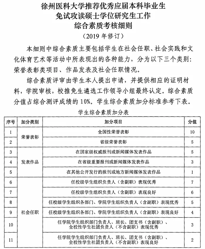 徐州医科大学2026届推免细则分析