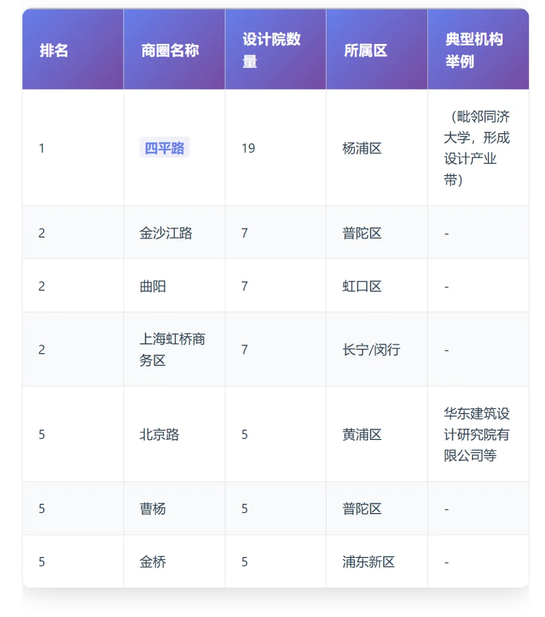 “四平路现象”值得特别关注。该商圈以19家的绝对优势位居榜首,其核心驱动力无疑是毗邻同济大学。这形成了从高校建筑规划学科(人才、知识源头)到市场化设计院(产业出口)的完整闭环,是一条极具活力的“设计产业走廊”。这为其他城市发展创意产业集群提供了“大学驱动型”的成功范本。